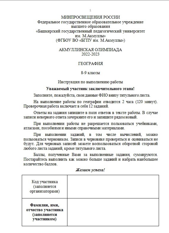28 марта прошел заключительный этап Акмуллинской олимпиады 2022-2023 по географии. Ребята участвовали в двух возрастных категориях: 8-9 классы и 10-11 класс+студенты СПО. На выполнение работ было отведено 2 часа, во время которых сопровождающие их педагоги тоже получили возможность поотвечать на вопросы преподавателей кафедры экологии, географии и природопользования и задать свои. Дольше всех педагоги не откпскали Зимфиру Шарифьяновну Тимербаеву - общение получилось взаимовыгодным. А результаты участников олимпиады уже размещены на сайте https://distolimp.bspu.ru/template/guest/olimp/news.p..