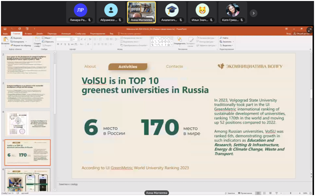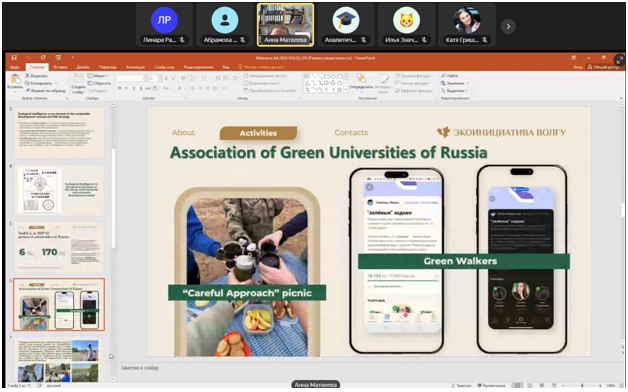 Преподаватель кафедры экологии, географии и природопользования Л.Р. Шугаипова приняла участие  VIII Национальном круглом столе UI GreenMetric «Зеленые университеты России», который состоялся 24 октября 2024 г. в онлайн-формате на базе Института экологии РУДН.