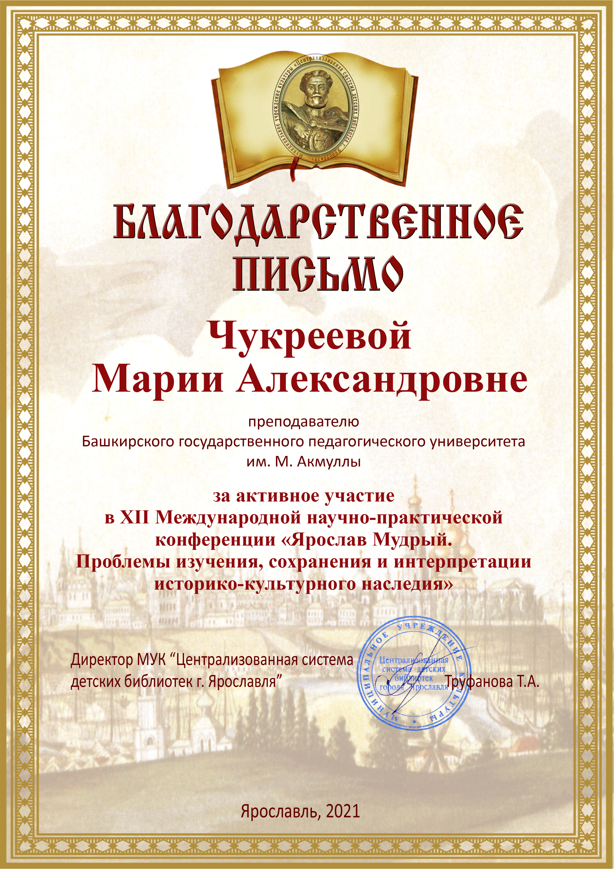 5 марта в г. Ярославль прошла конференция «Проблемы изучения, сохранения и интерпретации историко-культурного наследия», приуроченная ко Дню памяти святого князя Ярослава Мудрого. Она проводилась организаторами в онлайн формате. Соорганизаторами конференции выступили мэрия города Ярославля, Ярославская митрополия, управление культуры города Ярославля, Централизованная система детских библиотек города Ярославля и Центральная детская библиотека им. Ярослава Мудрого, Ярославский государственный университет им. П.Г. Демидова и Музей истории города Ярославля.