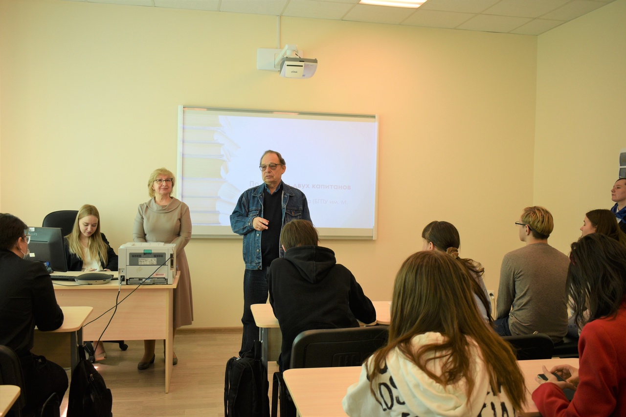 Доцент кафедры, кандидат исторических наук Римма Аскаровна Гильмиянова (руководитель образовательной программы «Референт аналитик информационных ресурсов») назвала свое выступление образно: «По следам двух капитанов». Используя различные виды ресурсов, она провела экскурс в события начала ХХ века, посвященные освоению Северного морского пути. Участники встречи с интересом слушали о трагическом дрейфе шхуны «Святая Анна» во льдах Карского моря, штурманом которой был уроженец Уфы Валериан Альбанов. Именно он стал прототипом романа В. Каверина «Два капитана», а память о нем увековечена открывшимся в 2021 году в Уфе музеем полярников (недаром музей носит его имя). После своего выступления Р.А. Гильмиянова ответила на вопросы присутствовавших на встрече.