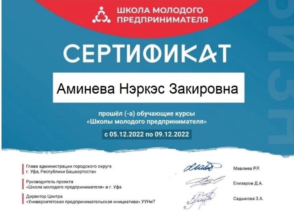 С 5 по 9 декабря 2022 года Центр «Университетская предпринимательская инициатива» совместно с Уфимским городским фондом поддержки и развития предпринимательства при поддержке Администрации города Уфы провел обучающие курсы по программе «Школа молодого предпринимателя!»