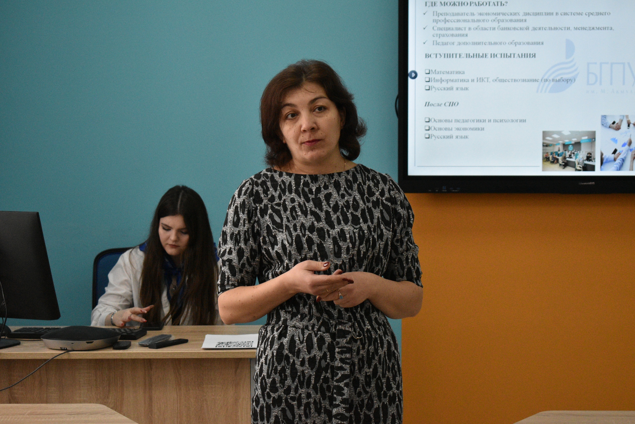18 марта 2023 года в Институте исторического, правового и социально-гуманитарного образования прошёл День открытых дверей. В нём приняли участие доценты кафедры культурологии и социально-экономических дисциплин Л. Н. Баянова и Р. А. Гильмиянова. Они рассказали будущим абитуриентам: учащимся выпускных школ,   студентам Башкирского кооперативного техникума и колледжа БГПУ о профилях, реализуемых кафедрой. Л. Н. Баянова, остановившись на программе подготовки "Экономика и управление" , детально показала особенности обучения, возможности трудоустройства выпускников профиля. Р. А. Гильмиянова в разговоре с  будущими абитуриентами сконцентрировала своё внимание на возможностях профессионального развития, открывающихся для выпускников в различных сферах  деятельности  с дипломом референта- аналитика информационных ресурсов. В завершение встречи  с присутствующими была проведена  викторина по экономике, подготовленная студентами.