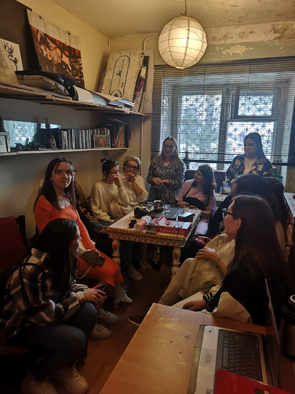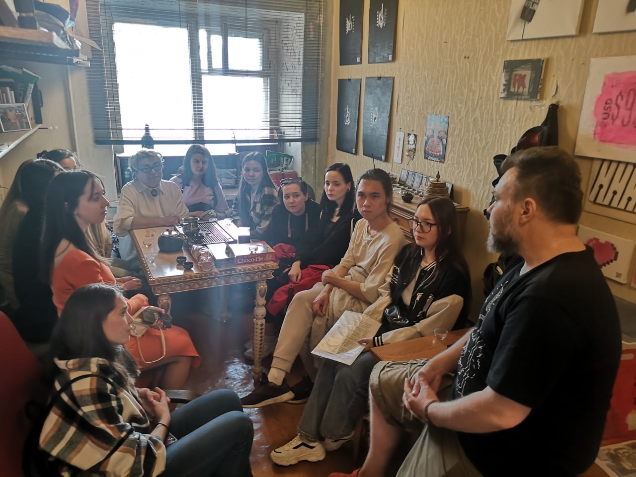 Студенты профилей "Мировая художественная культура и экономика" (3,4 курсы) и "Экономика и управление" (4 курс) совместно с доцентом Е.Д. Жуковой и аспирантом О.Ю. Фроловой в рамках работы Центра развития профессиональных компетенций "Адитон" посетили мастерскую молодого художника г.Уфы Дениса Мишина.