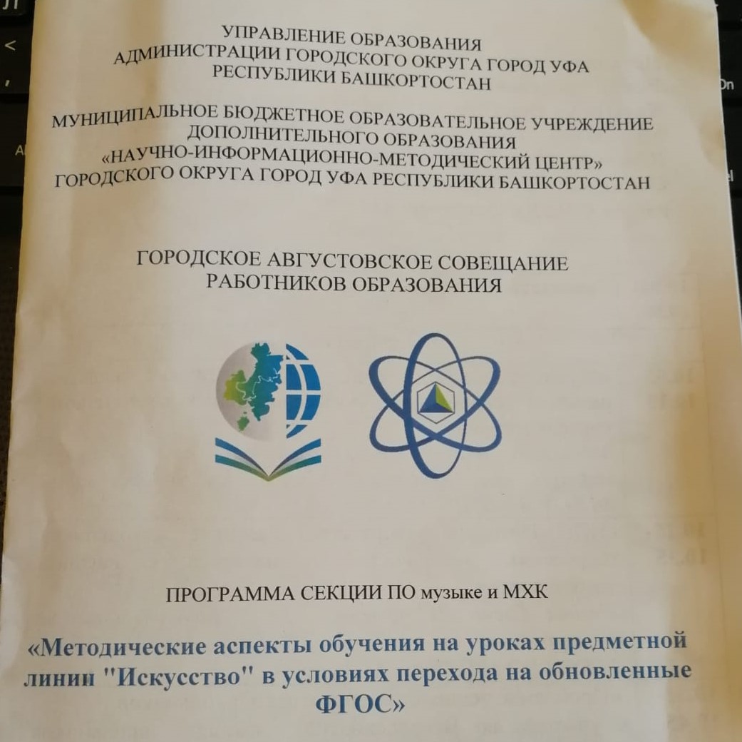 28 августа преподаватели кафедры Культурологии и социально-экономических дисциплин С. В. Рябова и Е. Д. Жукова приняли активное участие в Городском августовском совещании работников образования г. Уфы. Совещание было посвящено методическим аспектам обучения на уроках линии "Искусство" в условиях перехода на обновленные ФГОС.