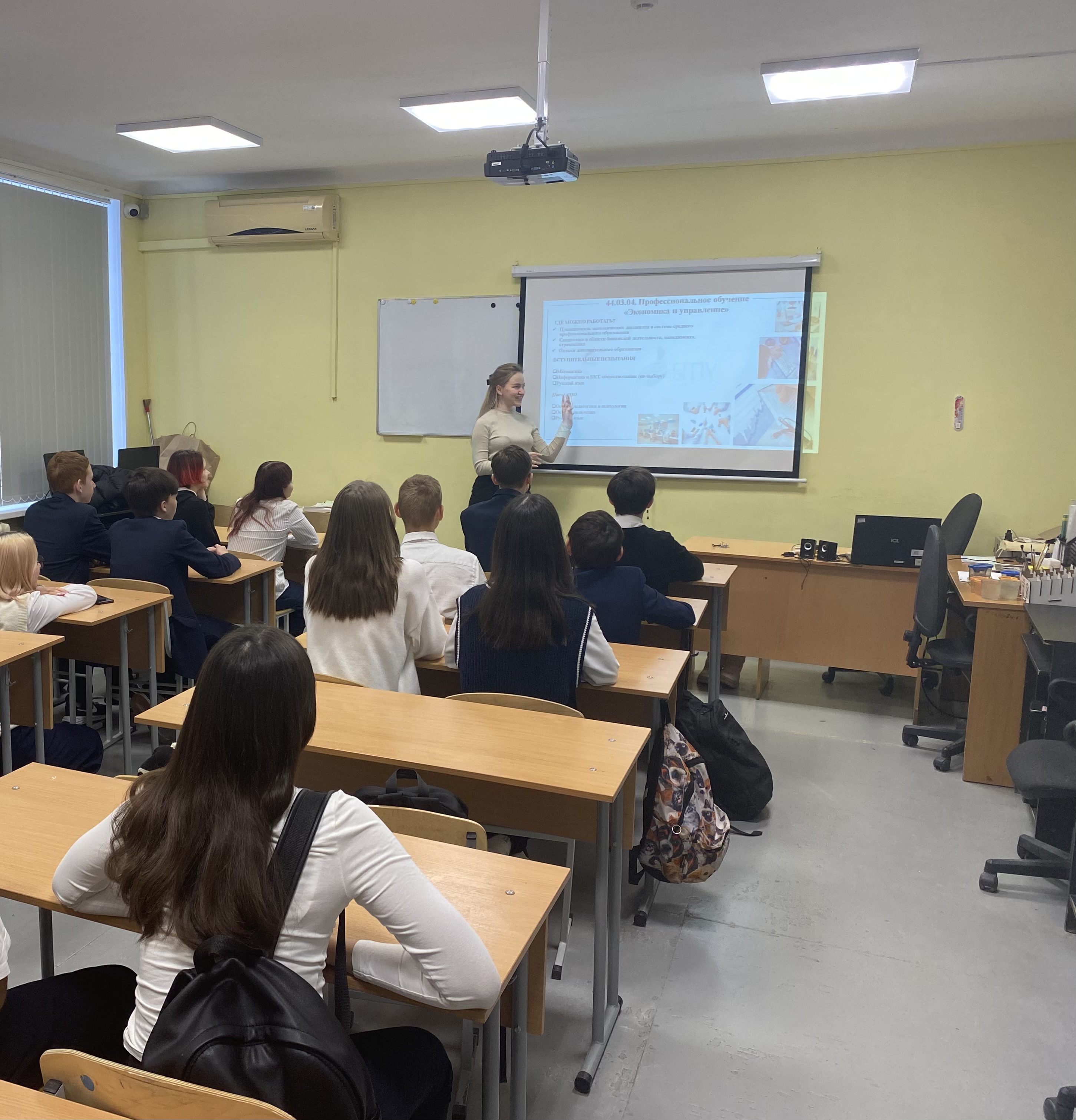 Студенты 4 курса профиля "Мировая художественная культура и экономика" в процессе прохождения педагогической практики проводят профориентационные занятия.