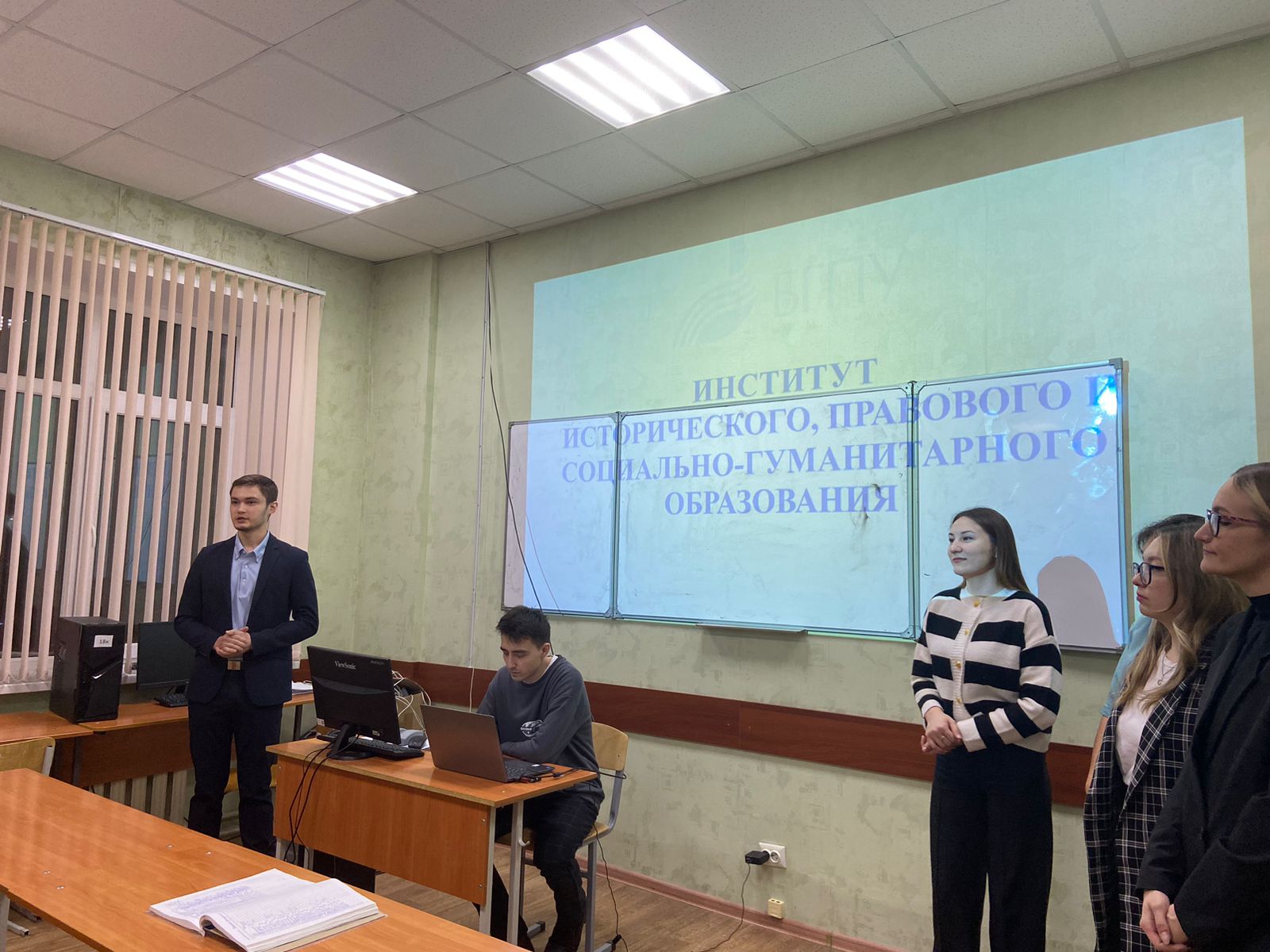 Далее наши студенты предоставили профориентационную информацию об Институте исторического, правового и социального-гуманитарного образования. Подробно было рассказано о всех направлениях и профилях обучения в Институте, условиях и правилах поступления, а также активной жизни студентов. Обучающихся техникума заинтересовали студенческие объединения, возможности целевого обучения, разновидности и размеры стипендий