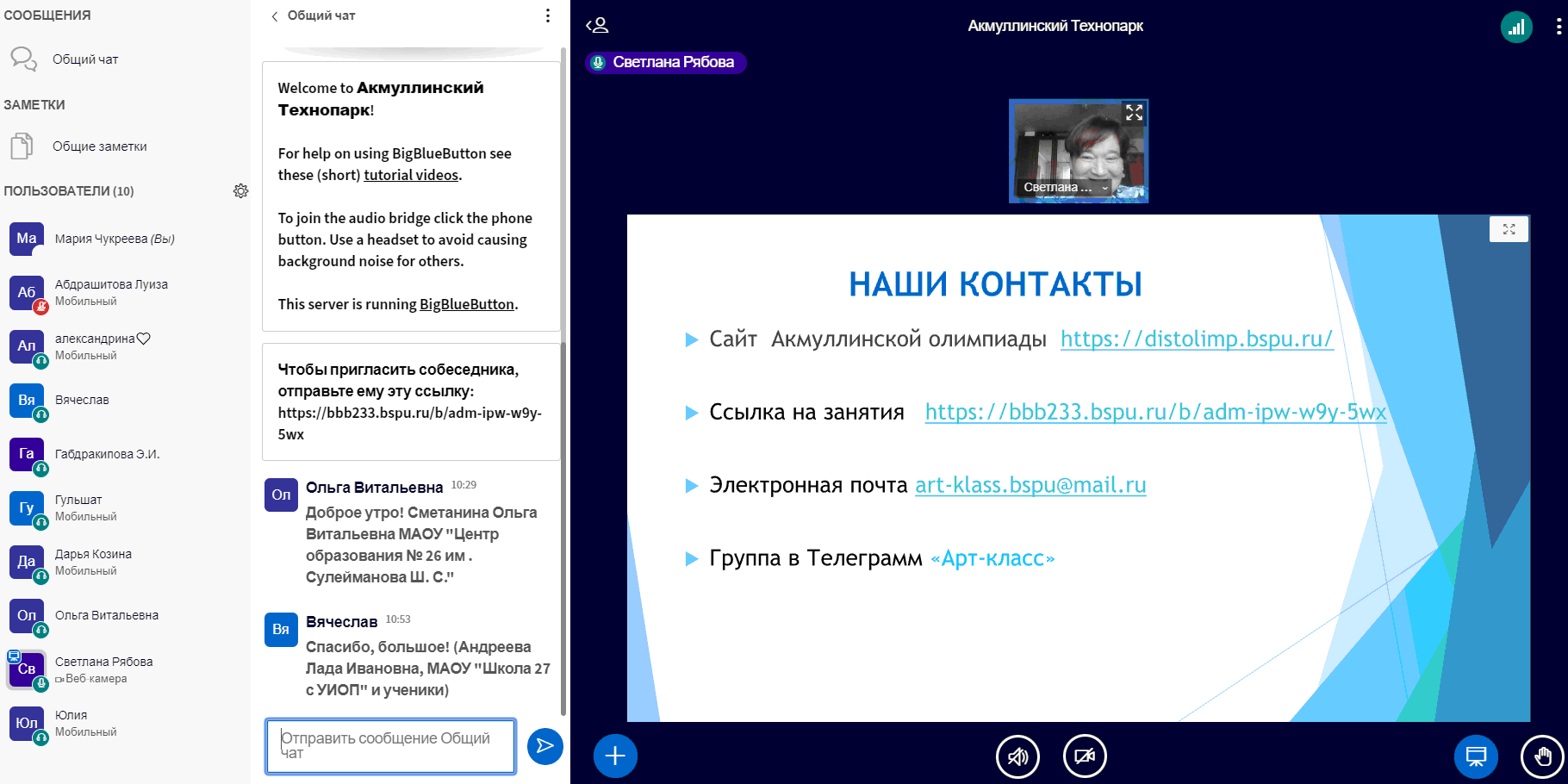 Информационная поддержка: сайт Акмуллинской олимпиады  ФГБОУ ВО «БГПУ им. М. Акмуллы», платформа СДО Института непрерывного профессионального образования «Вектор развития» БГПУ им. М. Акмуллы.