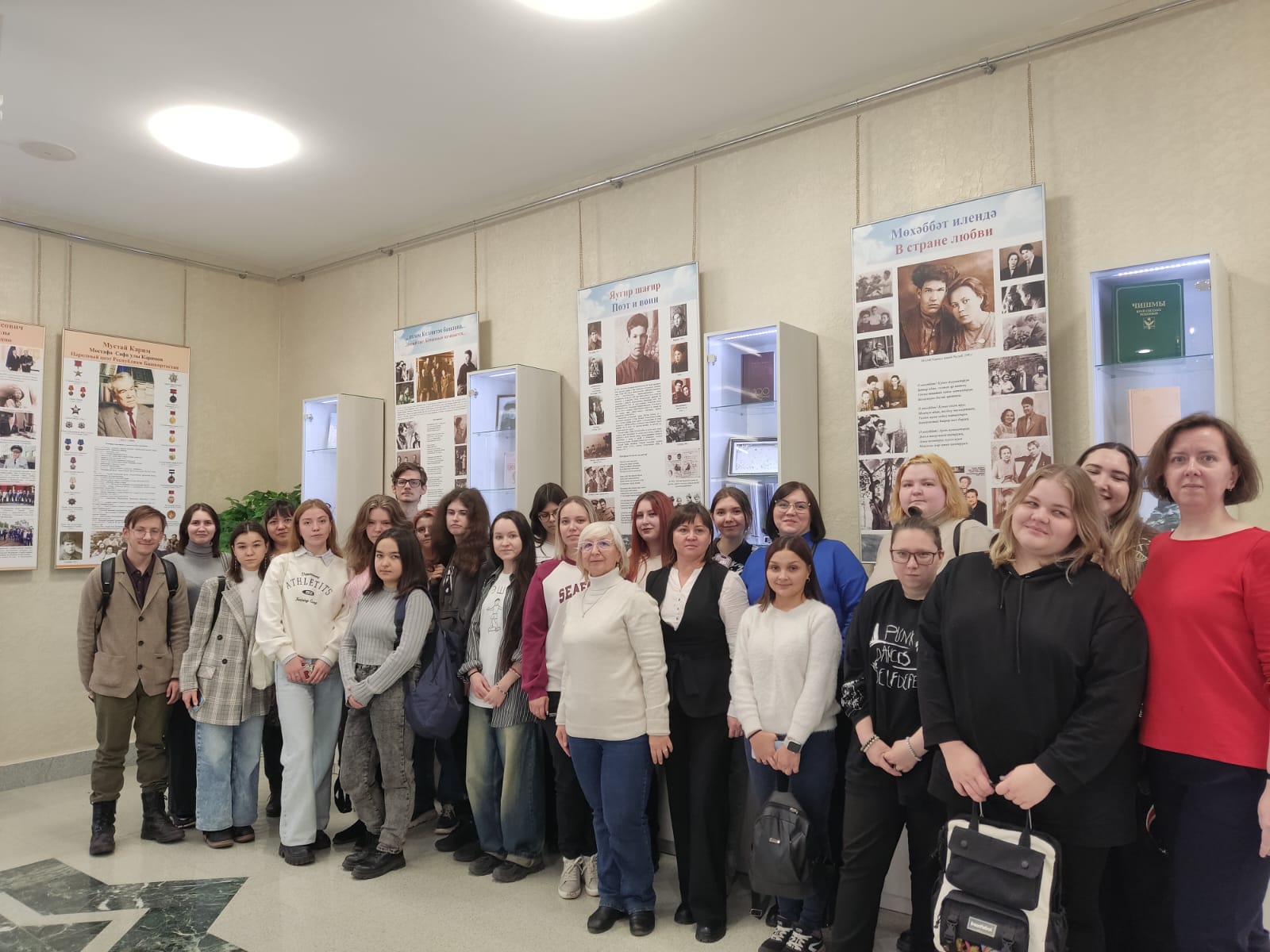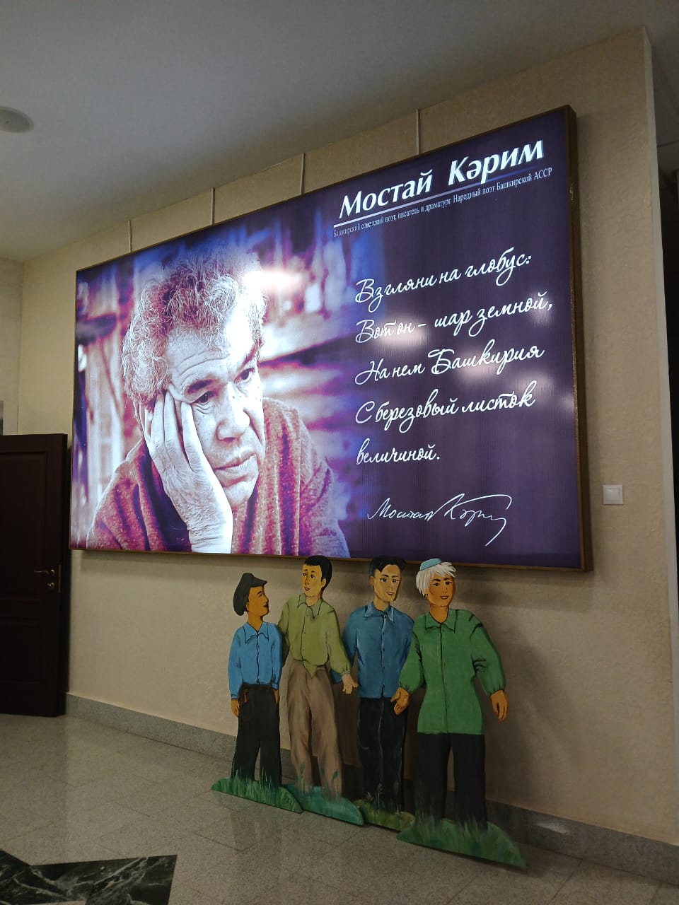 Экскурсия началась в литературном музее, где были представлены информационные стенды, посвященные великим деятелям Республики Башкортостан. Здесь можно было узнать много нового и интересного о таких знаменитых людях как Мустай Карим, Зия Камали, Сайфи Кудаш, Фарида Кудашева и т.д. Также в литературном музее посетители ознакомились с интерактивными элементами, например, с устройством под названием монофон, с помощью которого можно услышать голос Мустая Карима, песни и стихотворения.