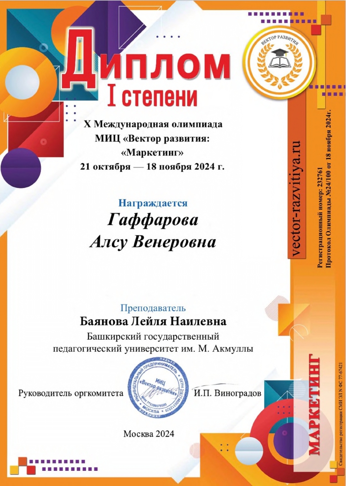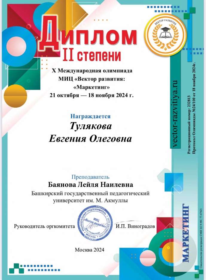 С 21 октября по 18 ноября 2024года прошла X Международная олимпиада МИЦ Вектор развития: «Маркетинг».