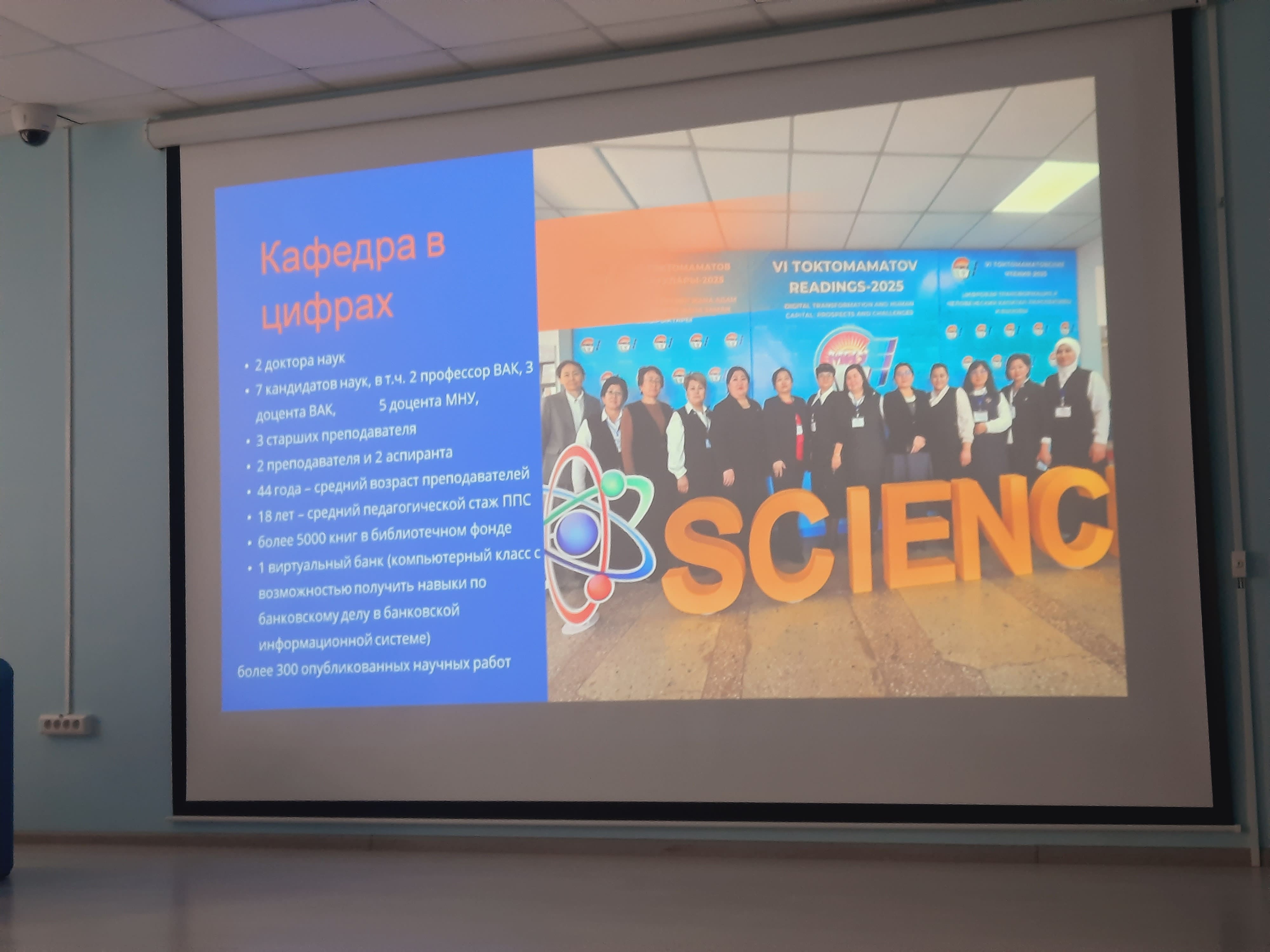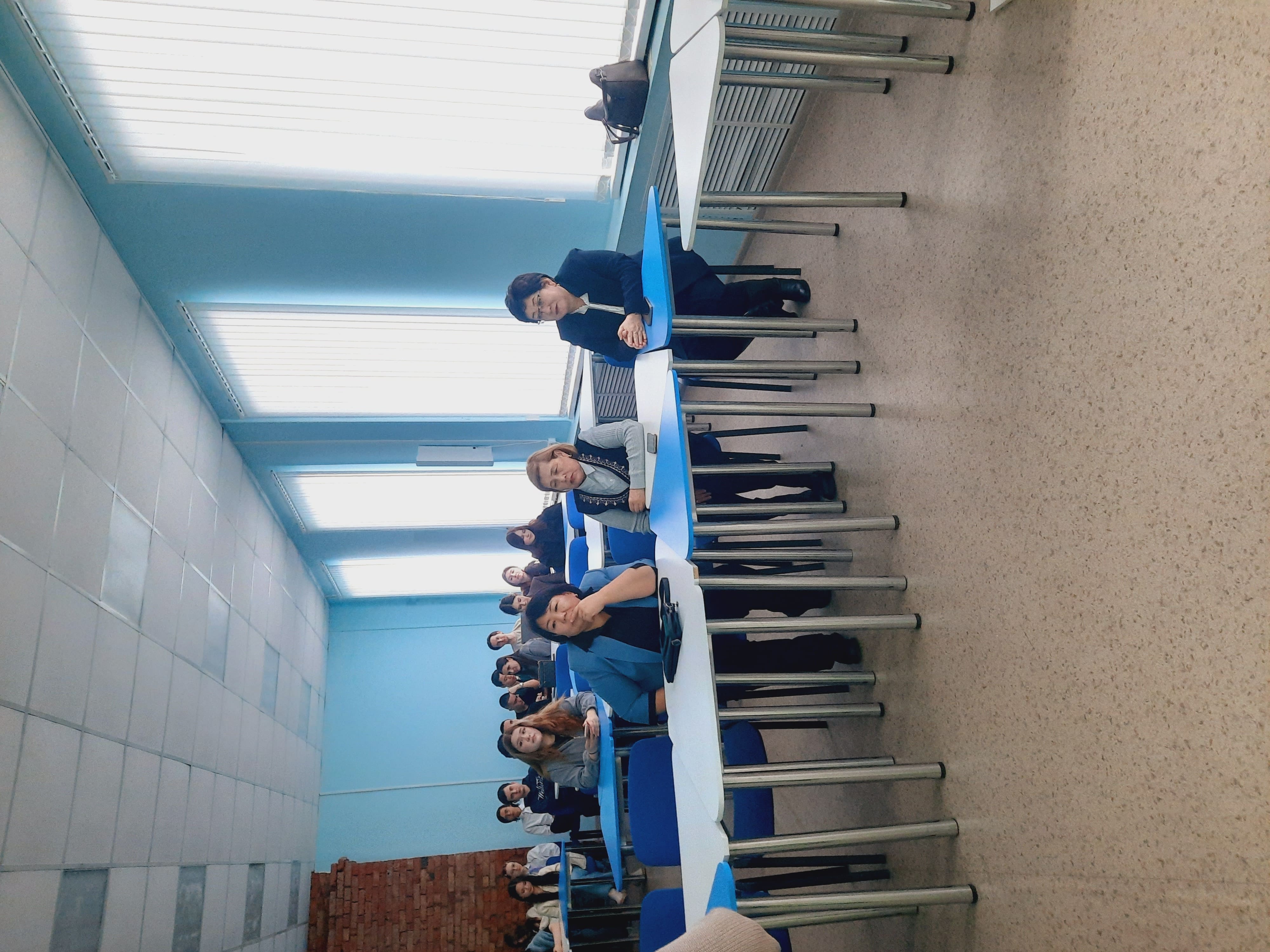 Доцент кафедры экономики и финансов, Кудайбердиева Жанара Арапбаевна рассказала об истории развития их вуза, его структуре, составе своей кафедры, представила презентацию с информацией об университете и профессорско-преподавательском составе, их успехах в области науки и образования.