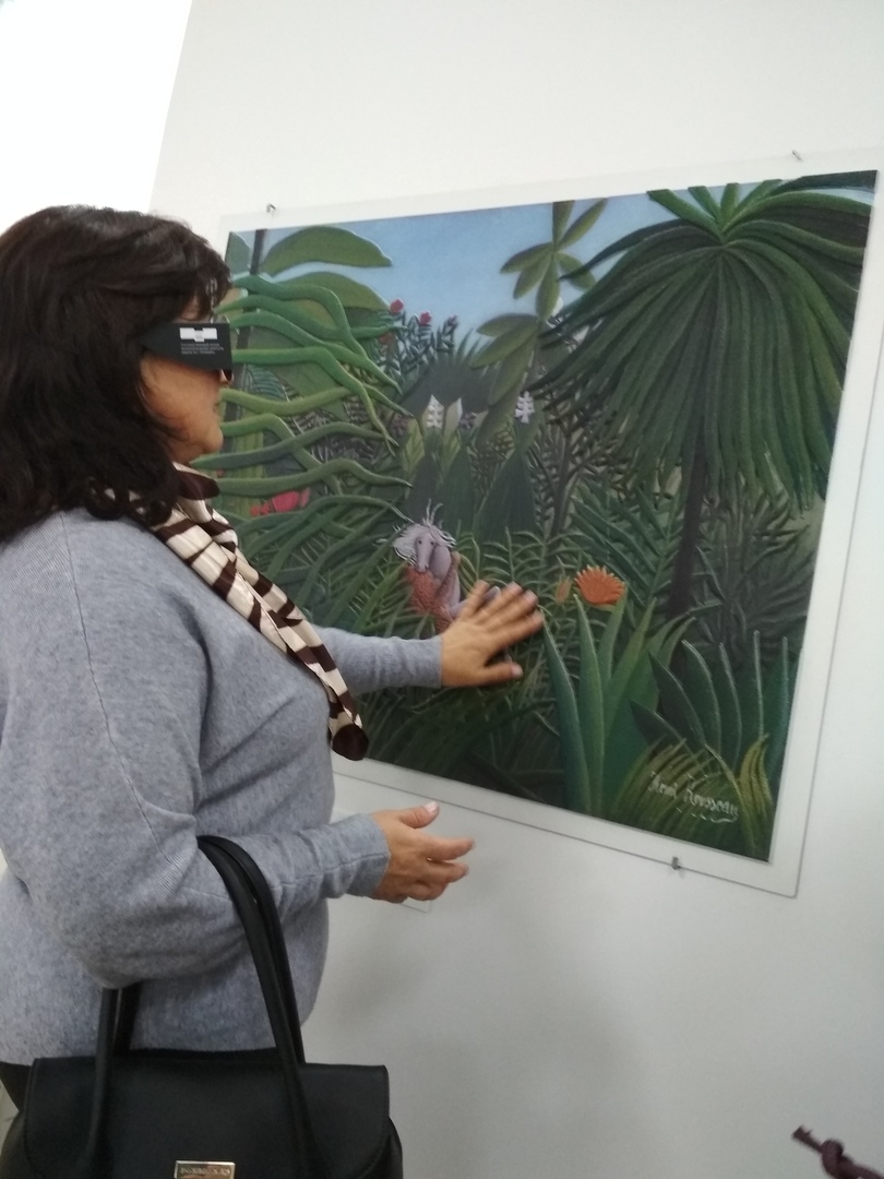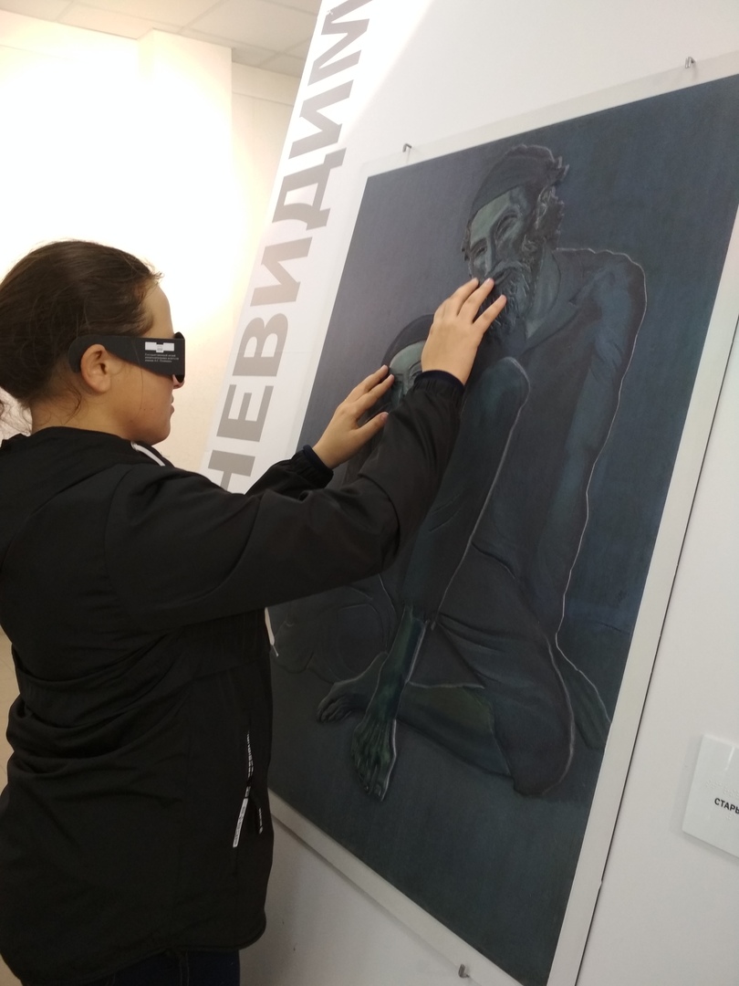 На выставке были представлены рельефные копии знаменитых произведений из собрания Пушкинского музея. Это первая в России передвижная выставка тактильных картин. Тактильные экспонаты для выставки созданы по инновационной технологии объёмной многослойной печати в Национальном музее Прадо (Испания). Фотографии оригиналов картин обработаны особым способом, а для каждого элемента подобрана индивидуальная текстура. Например, одежда персонажа на ощупь воспринимается именно как ткань. Границы предметов чётко обозначены с помощью послойного нанесения материала. Выставка создана специально для слепых и слабовидящих людей, но вряд ли кто-то способен удержаться и пройти мимо полотен, к которым можно прикоснуться. В экспозицию вошли произведения художников разных эпох и стилей, чтобы расширить представление слабовидящих людей о европейской живописи. Были представлены следующие полотна: «Благовещение» Сандро Боттичелли, «Мадонна с младенцем» Лукаса Кранаха Старшего, «Натюрморт с атрибутами искусств» Жана-Батиста Симеона Шардена, «Нападение ягуара на лошадь» Анри Руссо, «А, ты ревнуешь?» Поля Гогена и «Старый еврей с мальчиком» Пабло Пикассо.
