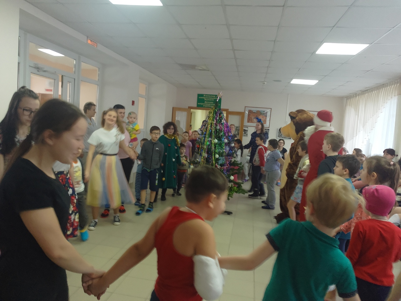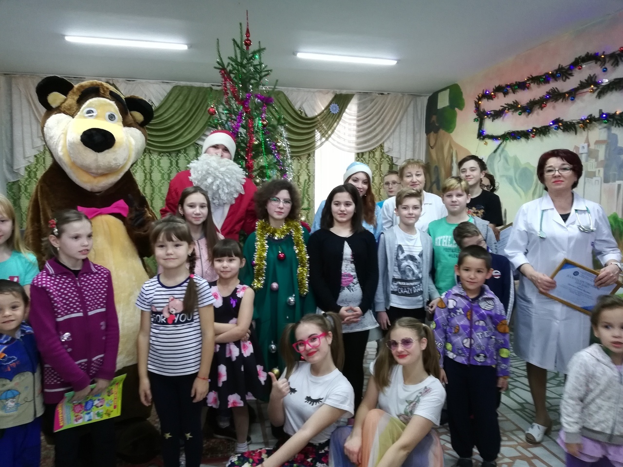18 декабря УНМЦ Байрам совместно с Детским Фондом Республики Башкортостан устроили предновогодний праздник для детей Городской детской клинической больницы №17 и Кардиодиспансера г.Уфа . Программа была очень насыщена! Яркие номера, веселые игры и хорошее настроение подарили детям самые озорные Бабки-Ёжки, самый добрый и мягкий Мишка, ну и конечно же, какой Новый Год без Деда Мороза и Снегурочки. В больницу студенты с праздничной программой приезжают не первый раз, но как всегда заведующие отделением и врачи встречают теплыми улыбками дорогих гостей. В этот раз УНМЦ Байрам приготовил подарки не только для детей, но и для любимых и многоуважаемых врачей, поздравив их с наступающим Новым годом и вручив благодарственные письма. В конце программы ребята водили хоровод вокруг елки, а после фотографировались с Дедом Морозом, Снегурочкой, Медведем, и конечно же, с замечательными Бабками-Ежками!