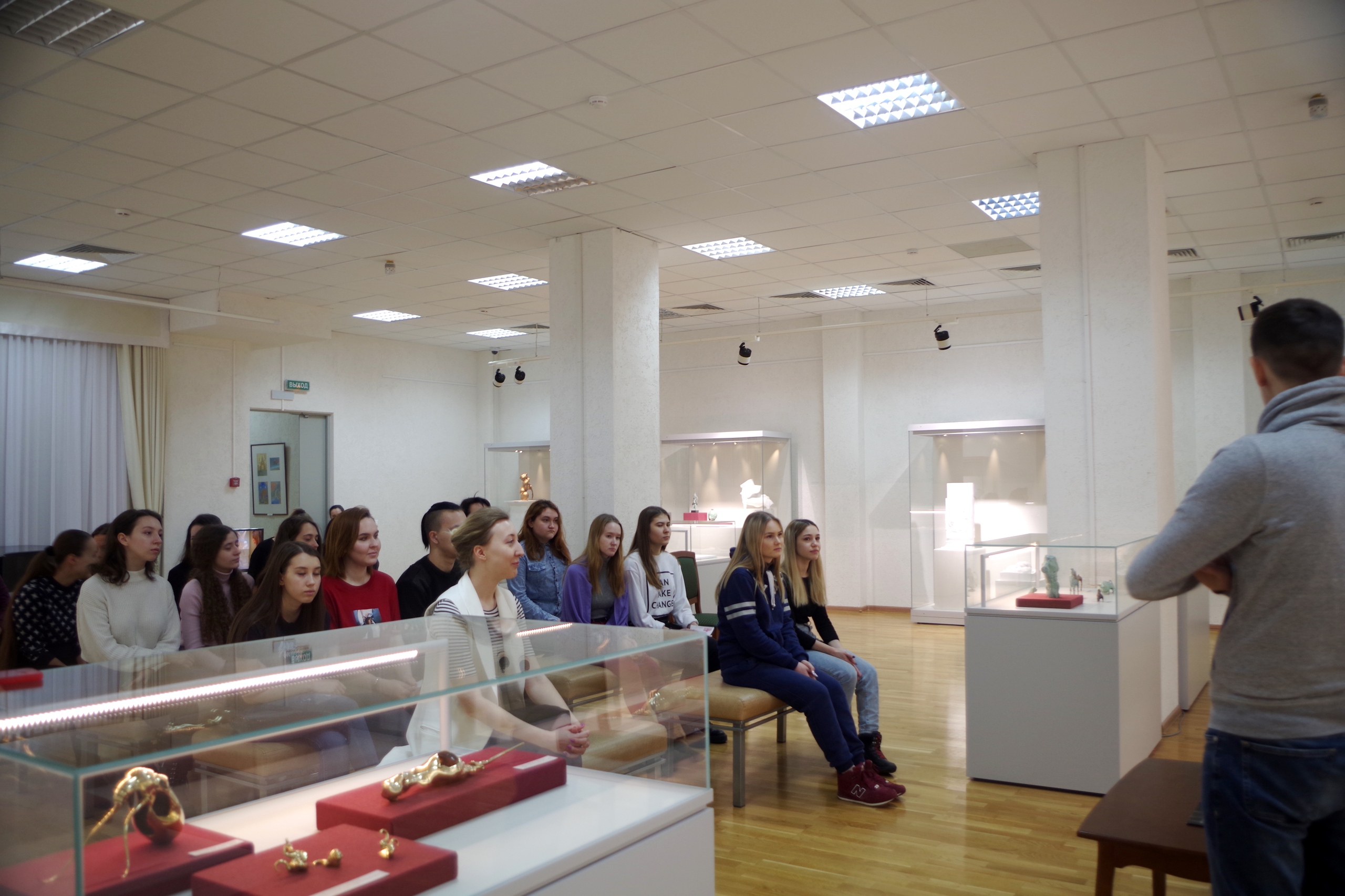 3 марта 2020 г. состоялась творческая встреча студентов художественно-графического факультета со скульптором Альфизом Сабировым на фоне его выставки «Миллионы лет» в БГХМ им. М.В. Нестерова. Альфиз Сабиров прилетел на один день в Уфу, чтобы пообщаться с первокурсниками Худграфа  БГПУ им.М. Акмуллы – поделиться опытом, рассказать о своем пути, даже сориентировать студентов  в профессии. Работы этого молодого, но уже известного мастера выставлялись в Гренобле, Нью-Йорке, Лондоне, Париже и Токио, а также на всем постсоветском пространстве. Они находятся в частных и музейных коллекциях. Манере Сабирова  присущ интерес к легенде, воплощение современного мира в бронзе.  Но всегда находится  место интересу к  старинным артефактам, выглядящим так, словно их только что достали из раскопа археологи.  В  стихии  металла он находится  с 2013 г. Альфиз закончил Российскую Академию живописи, ваяния и зодчества. Перед тем была учеба в  училище, где Сабиров готовился стать преподавателем ИЗО, собираясь впоследствии вернуться в родную деревню и продолжить стезю матери. Он даже не догадывался, что ему преподнесет случай. Однажды, учась в академии, он увидел момент плавки в мастерской. В тигле кипело 5 кг бронзы. В эту минуту молодой художник  принял решение пойти по стезе скульптора. И тогда он поставил перед собой вопрос, наблюдая, как расплавленный метал пузырится – смогу ли я подчинить себе металл? Это были завораживающие минуты, интерес представляло слияние сразу нескольких стихий – огня, металла, земли и воздуха. Осознанный выбор он сделал на 2 курсе, осваивая технологии обращения с латунью и бронзой. Вдохновляют А. Сабирова тюркские легенды и возможность проявить свою  фантазию. Скульптура статична, но в ней есть жизнь, - говорит автор. - Стиль диктуют артефакты, рожденные тысячи лет назад. Альфиз Сабиров работает с гипсом, песчаником и мрамором, но бронза – его любимый материал.  Он рассказал об очень интересной технологии создания  отливки методом литья по воску, которая в свое время его буквально заворожила.