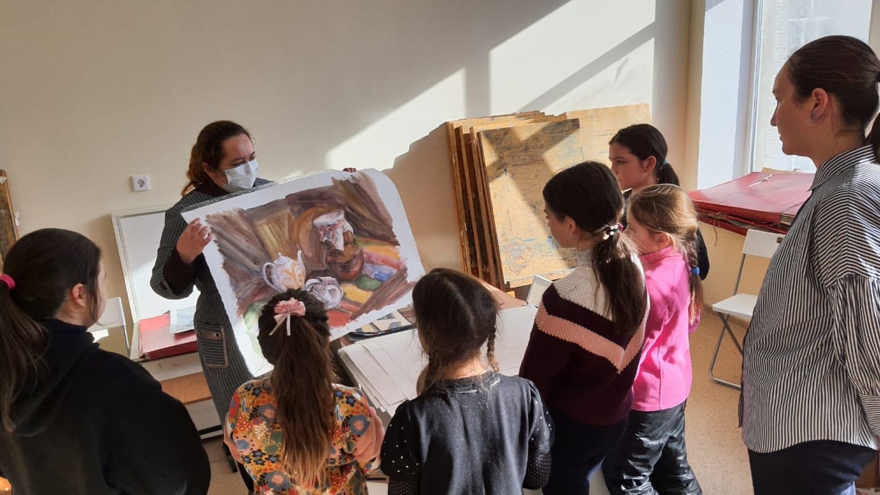 Дина Рустямовна рассказала учащимся Центра детского творчества «Глобус» об истории возникновения акварельной живописи и показала, как быстро и просто нарисовать натюрморт акварелью. Далее детей пригласили самим попробовать свои силы в акварельной живописиВ конце мастер-класса ребята рассматривали полученные работы и были очень довольны своим результатом и счастливые пошли домой.
