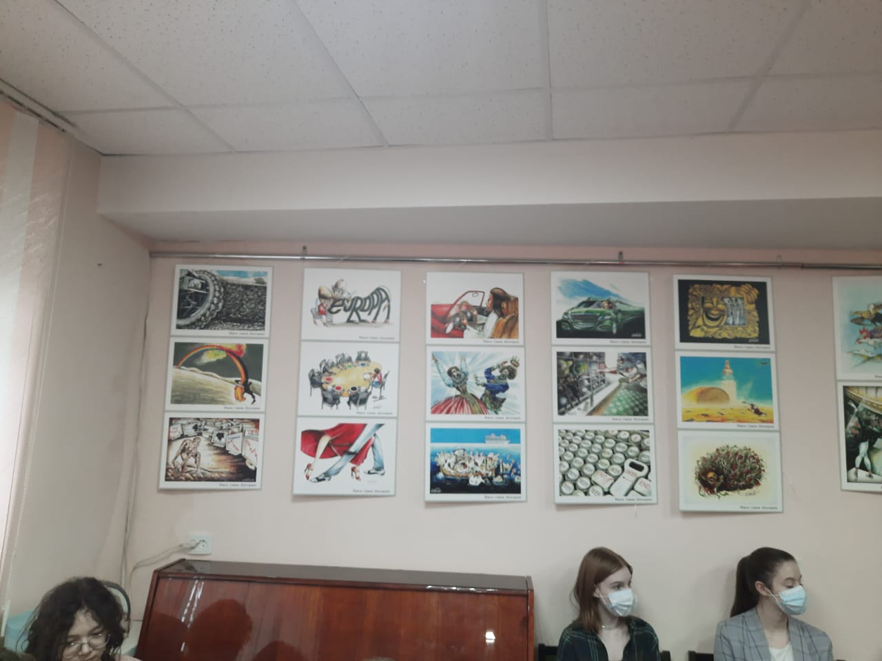 Выступили: Консул Болгарии Шредер Я.Ю.,Аброщенко В.В. - президент международной космической школы,Юрий Григорьев-карикатурист, Камиль Бузыкаев - карикатурист, Загвоздкин Г.А.-доцент кафеды ИЗО, Лаврентьев С.Н. и др.