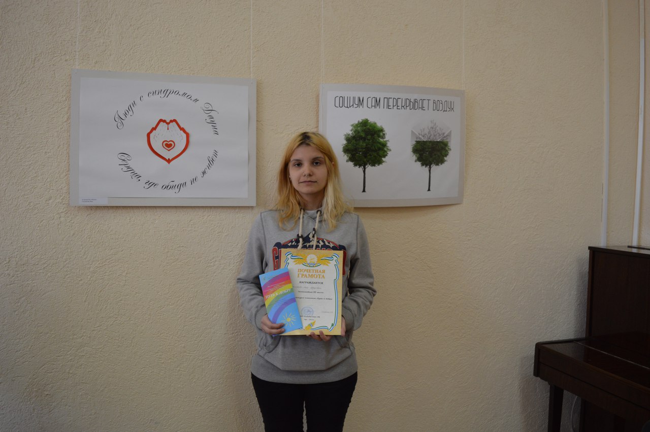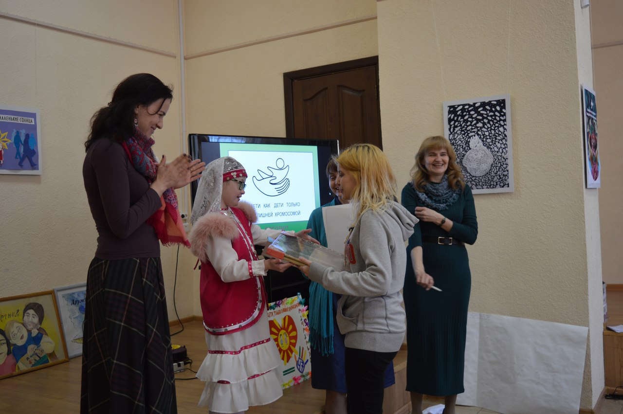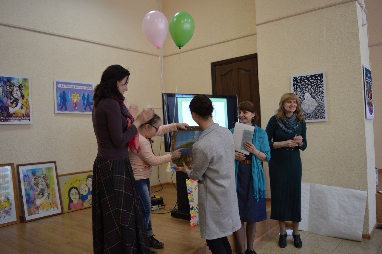 Открытие выставки прошло в теплой доброжелательной атмосфере. Дети даже подготовили небольшой концерт для гостей мероприятия, а родители - подарки для победителей. Победителями очного тура конкурса стали Азалиева Елена с плакатом "Дети словно маленькие солнца" (1 место), Исламгулова Алия с серией работ "Человек с синдромом Дауна" (2 место) и Теплякова Яна с плакатом "Социум перекрывает воздух" (3 место). Все остальные участники проекта награждены благодарственными письмами от РОО "СоДействие" РБ. Но конкурс на этом не завершился. До 31 мая проходит интернет-голосование на сайте Центральной городской библиотеки по ссылке: https://vk.com/album-67930619_244413565. Победитель будет награжден призом зрительских симпатий в День защиты детей - 1 июня.