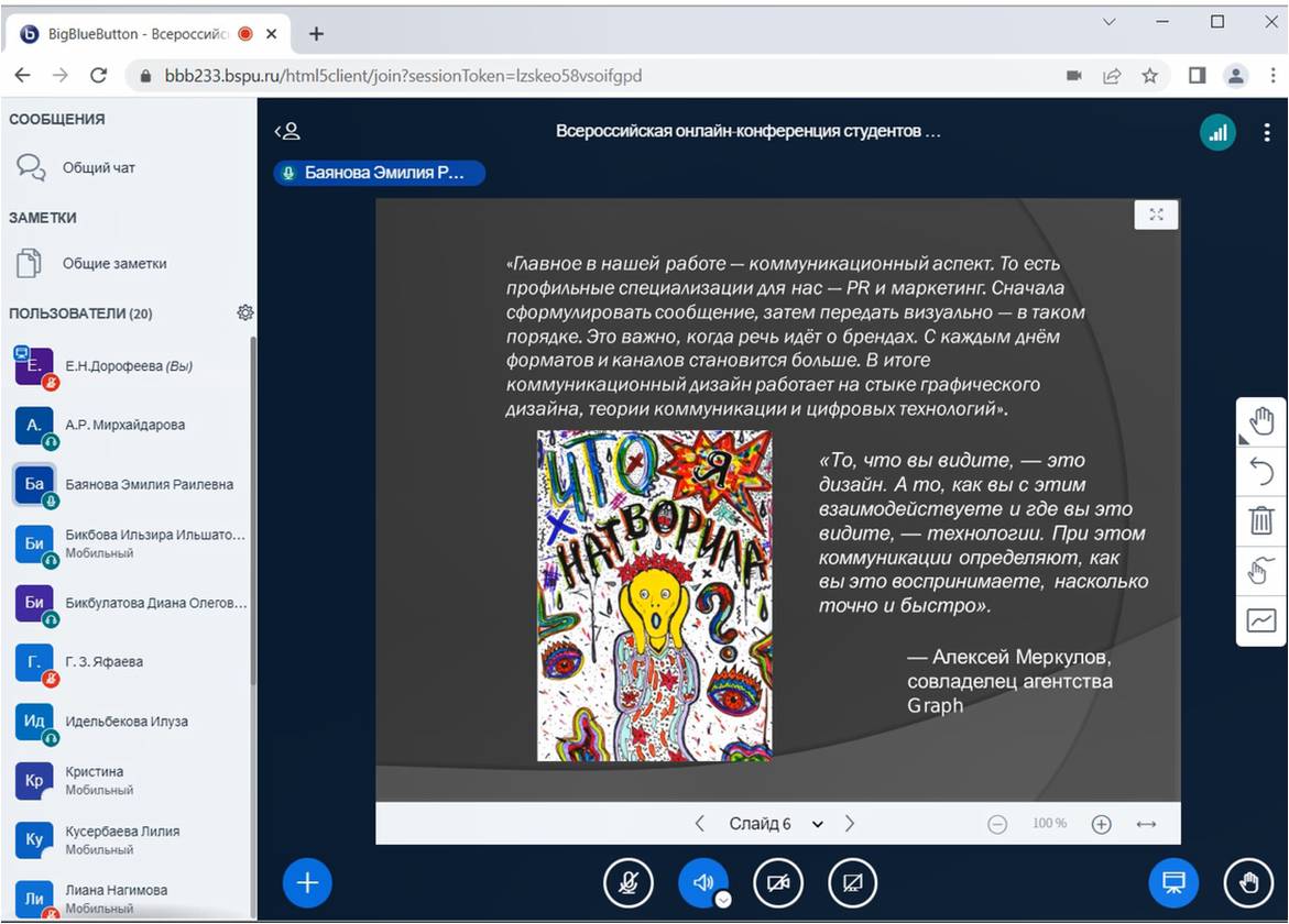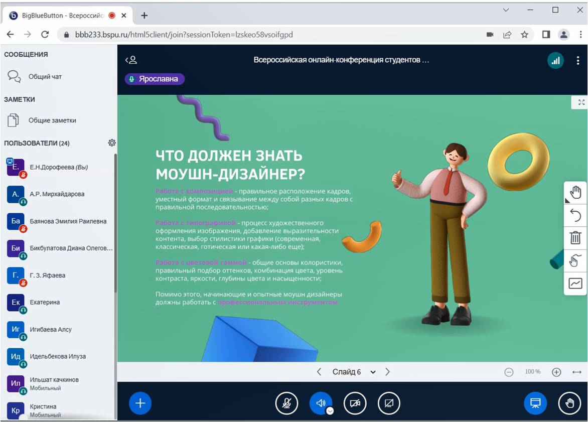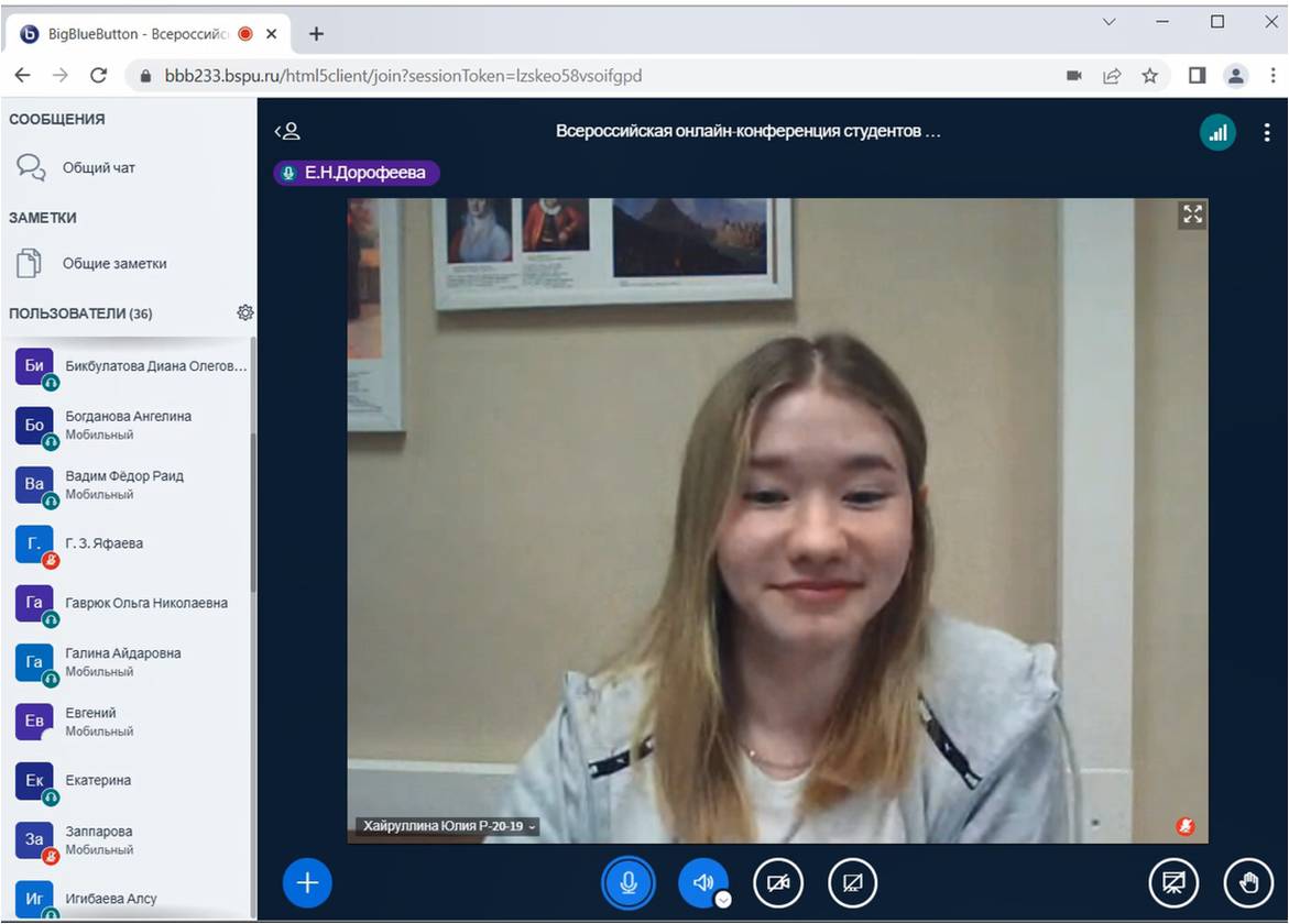 Конференция проводилась в дистанционном формате с использованием университетской платформы BigBlueButton.