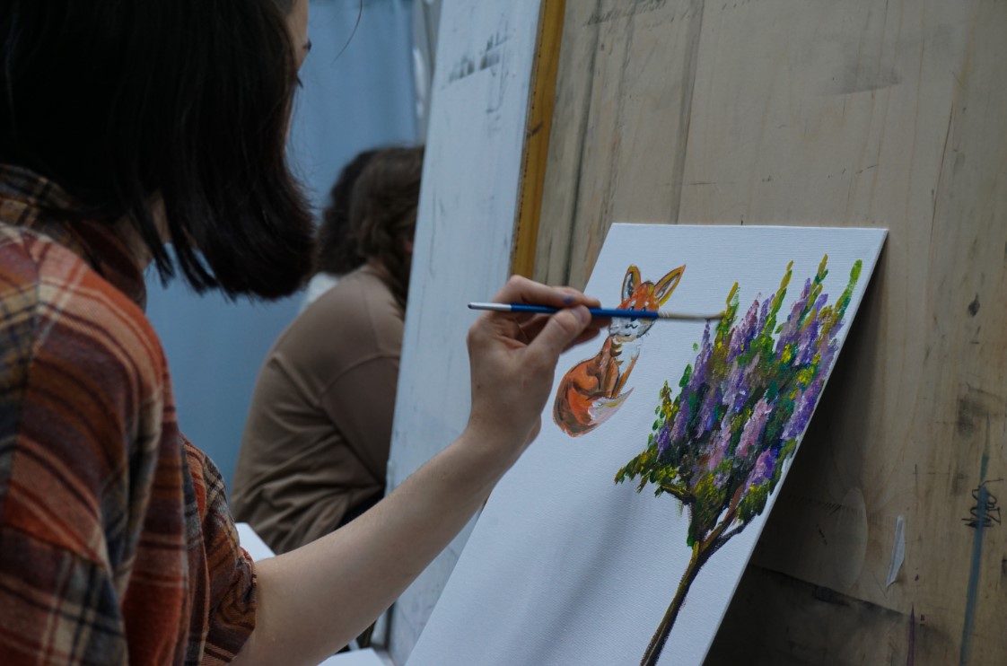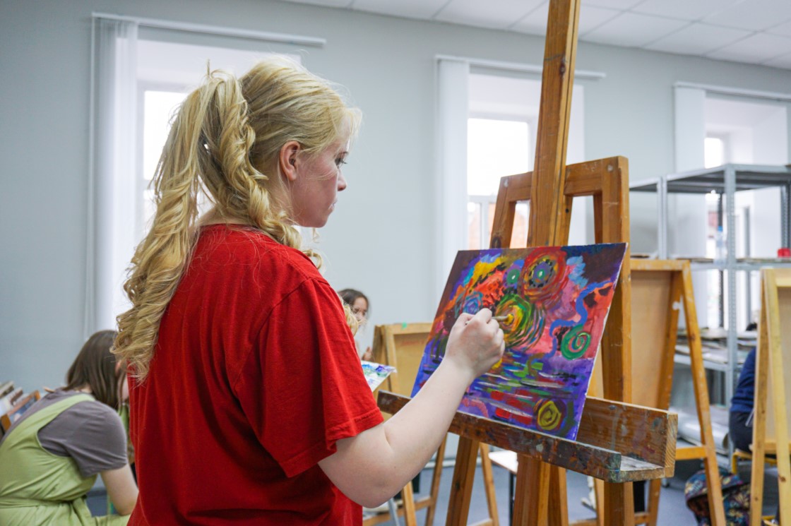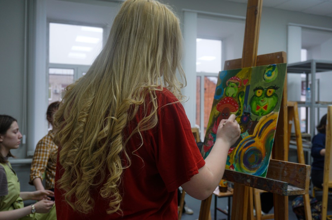 27 апреля 2022 г. прошло факультетское мероприятие "Холсты и краски". Мероприятие проведено за счет реализации сертификата в 55 тысяч рублей, выделенных студенческому активу. Благодаря этому сертификату будет реализовано еще несколько мероприятий на художественно-графическом факультете. "Холсты и краски" - творческое мероприятие призванное сформировать командную работу, улучшить коммуникационные связи в студенческом коллективе. Каждый из участников получил пустой холст, на котором он рисовал в течение определенного времени, а затем участники поменялись холстами и продолжили рисовать на полученных полотнах, меняясь ими в установленное время. По итогу получилась творческая серия работ благодаря командной работе участников.