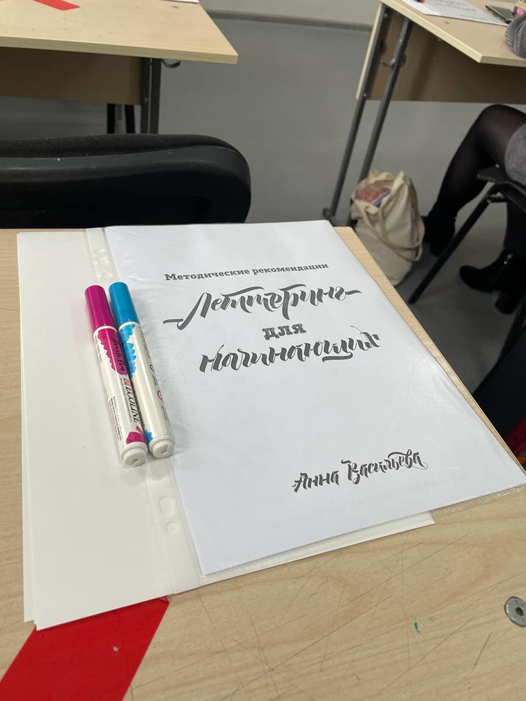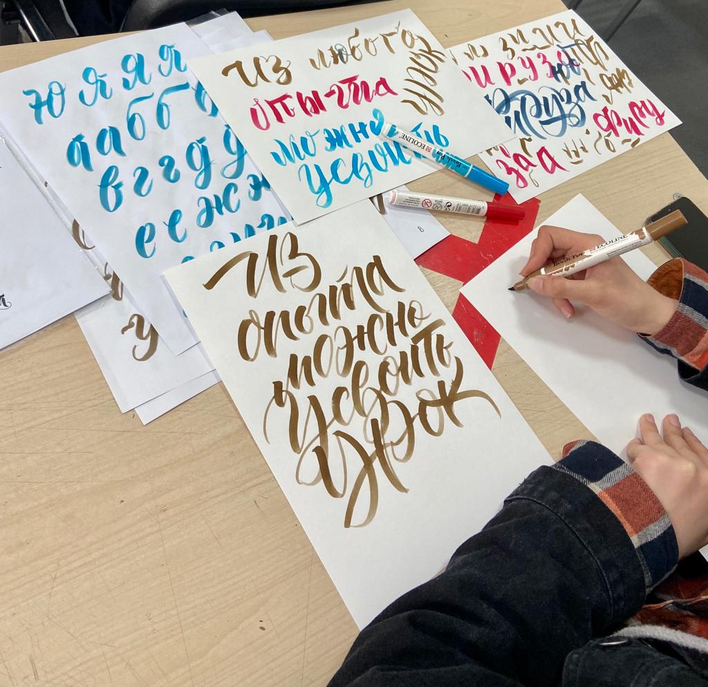 Мероприятие состояло из двух образовательных блоков: теоретической и практической части. Перед участниками стояла задача познакомиться с каллиграфическим инструментом brash pen, изучить написание букв данным инструментом по методичке и выполнить шрифтовую композицию (леттеринг) в свободном стиле, с учетом индивидуальных особенностей почерка. Студенты за 3 часа получили массу интересной информации о искусстве каллиграфии, леттеринге и сферах применения. Освоили навык написания каллиграфическим инструментом и выполнили несколько шрифтовых композиций.