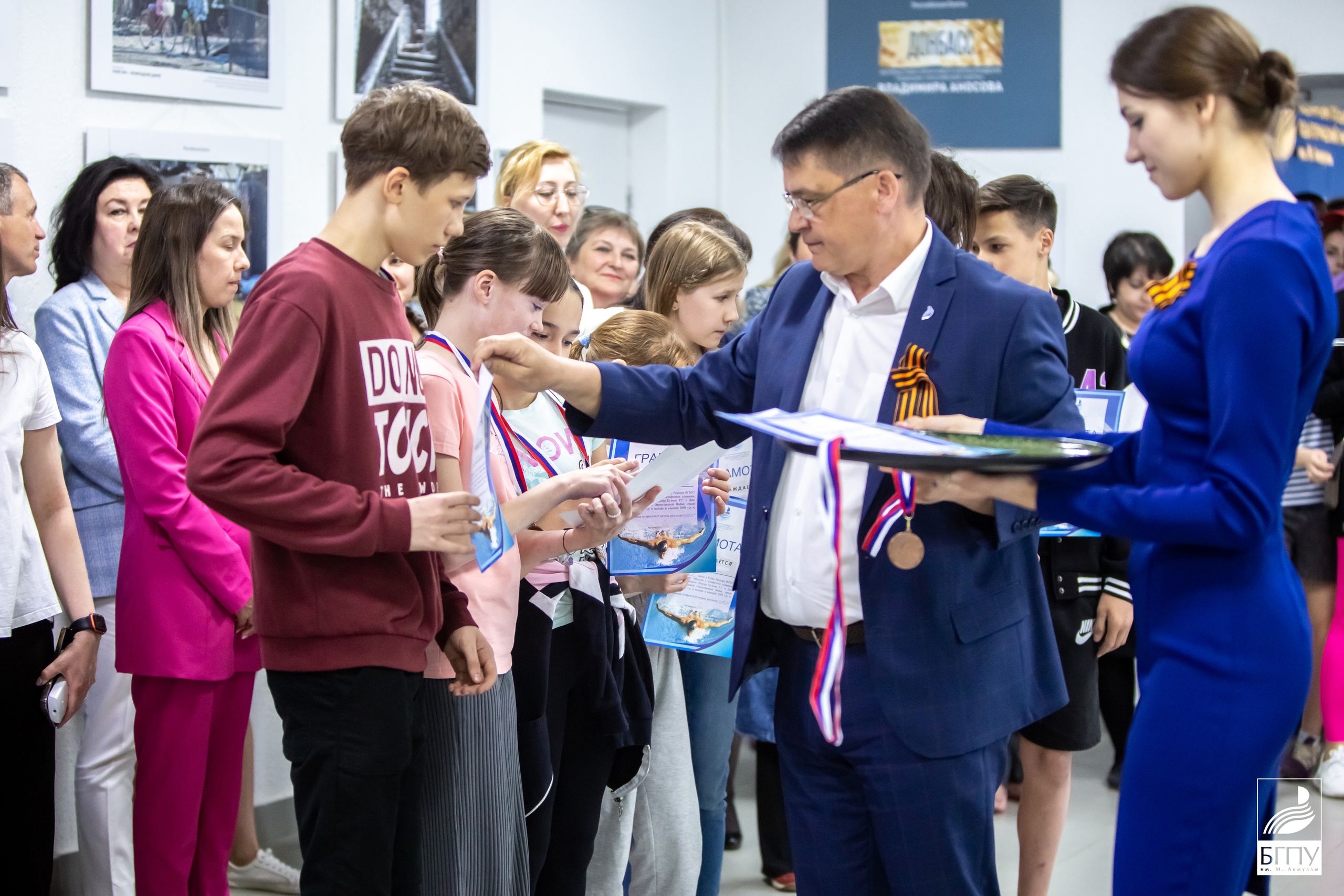 На открытии выставки присутствовали преподаватели университета, студенты и школьники-победители турнира по плаванию на Кубок ректора университета в честь Почетного академика Академии наук Республики Башкортостан, отличника просвещения и народного образования, заслуженного деятеля науки Башкортостана, удостоенного многих правительственных наград в эстафетном плавании, фронтовика, второго ректора Акмуллинского университета Рустема Гумеровича Кузеева. Здесь же победителей турнира по плаванию наградили памятными медалями и почетными грамотами.