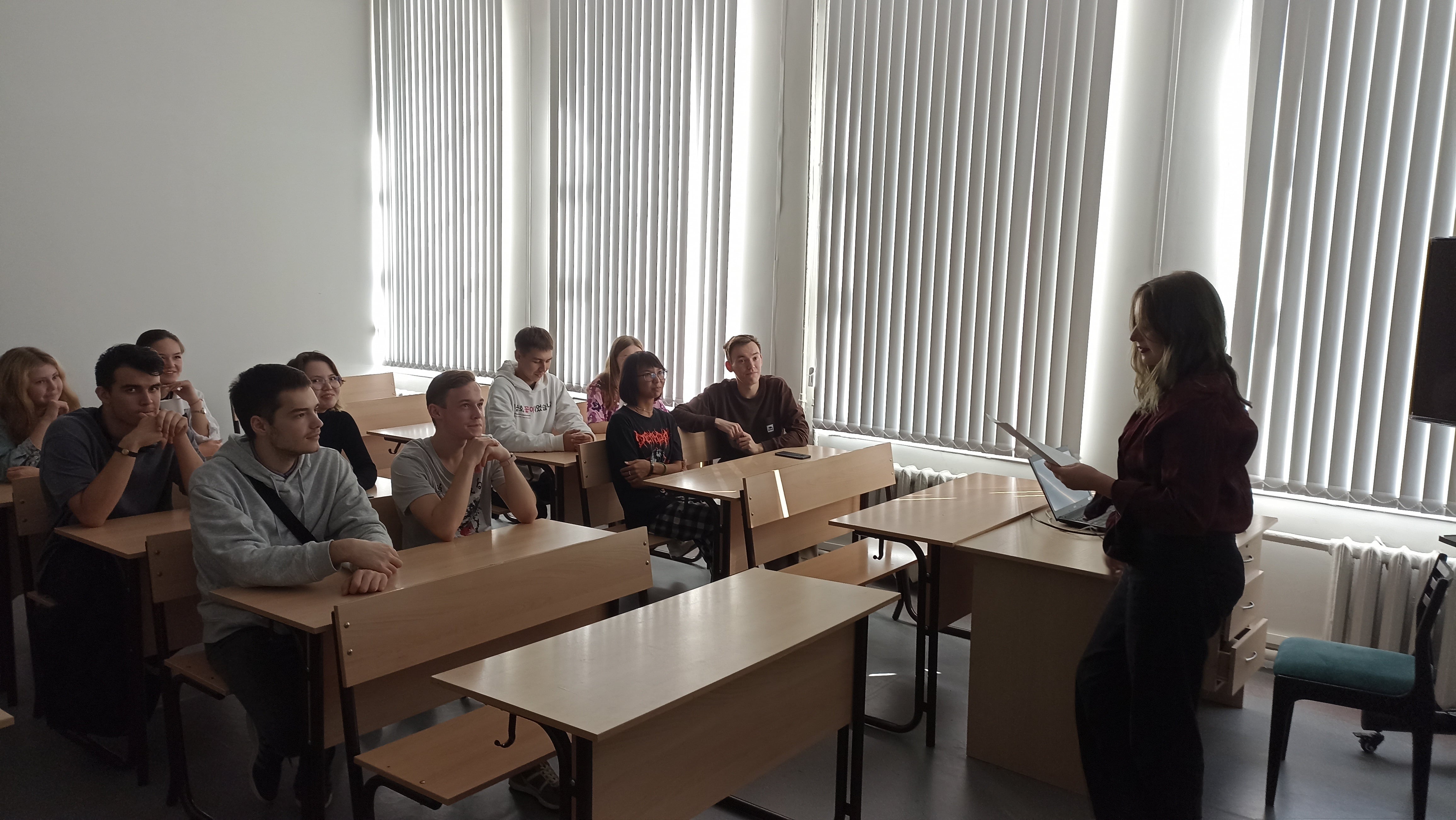 25.09 2023 на Художественно-графическом факультете прошло внеурочное мероприятие «Разговоры о важном». Студентка 5 курса направления ИЗО и технологии, Горяйнова Анна, провела беседу на тему избирательного права со студентами ДИЗКГА-11-23 и студентами ДПИД-21-22.