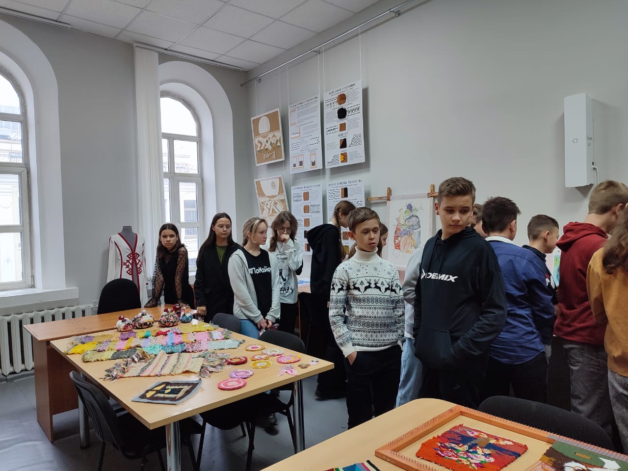 16 ноября на ХГФ прошло профориентационное мероприятие для обучающихся школы 131 городского округа города Уфы . Доцент кафедры дизайна Дорофеева Е.Н.  провела для ребят экскурсию по нашему факультету, показала учебные мастерские и  аудитории, рассказала об обучении на факультете. Ребята с интересом рассматривали работы студентов, задавали вопросы. А затем под руководством преподавателя ЕлхинойА.В. и студентов 4-го курса направления Изобразительное искусство Черновой Валерии, Салимгареевой Камиллы и Замурагиной Александры приняли участие в мастер-классе  по изготовлению куклы Тульская кувадка.