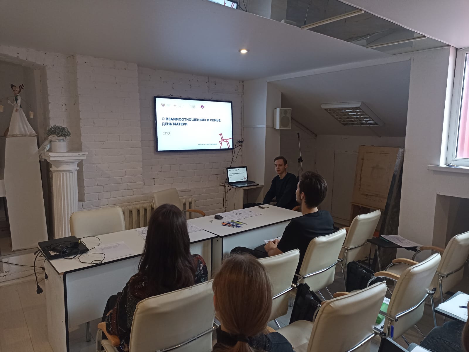На ХГФ прошло еженедельное внеурочное мероприятие «Разговоры о важном». Сегодня ребята поговорили на тему взаимоотношений в семье. Беседа была  посвящена Дню Матери, провел ее со студентами младших курсов Лиходед Вячеслав.