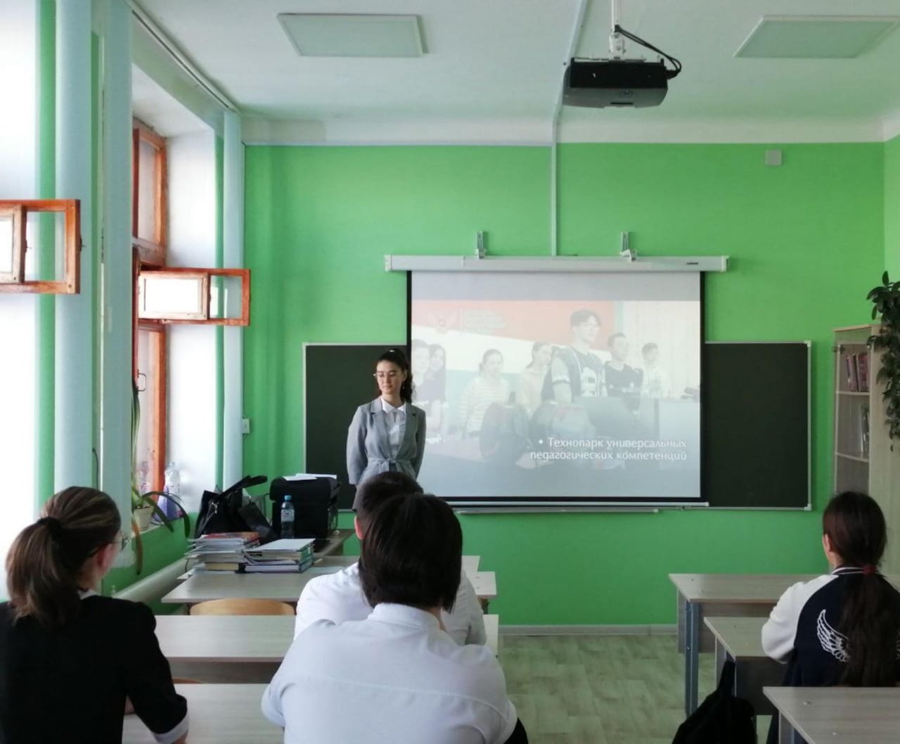 23 января 2024г., в рамках педагогической практики, была организована встреча с учащимися 10-11 классов МБОУ СОШ с. Старокалмашево со студенткой 3 курса художественно-графического факультета Сабгияновой Динарой Рауфовной. Динара провела профориентационную беседу для старшеклассников, познакомила ребят с университетом, рассказала о бюджетных местах и направлениях обучения. Проинформировала о работе факультетов, институтов и колледжа БГПУ.