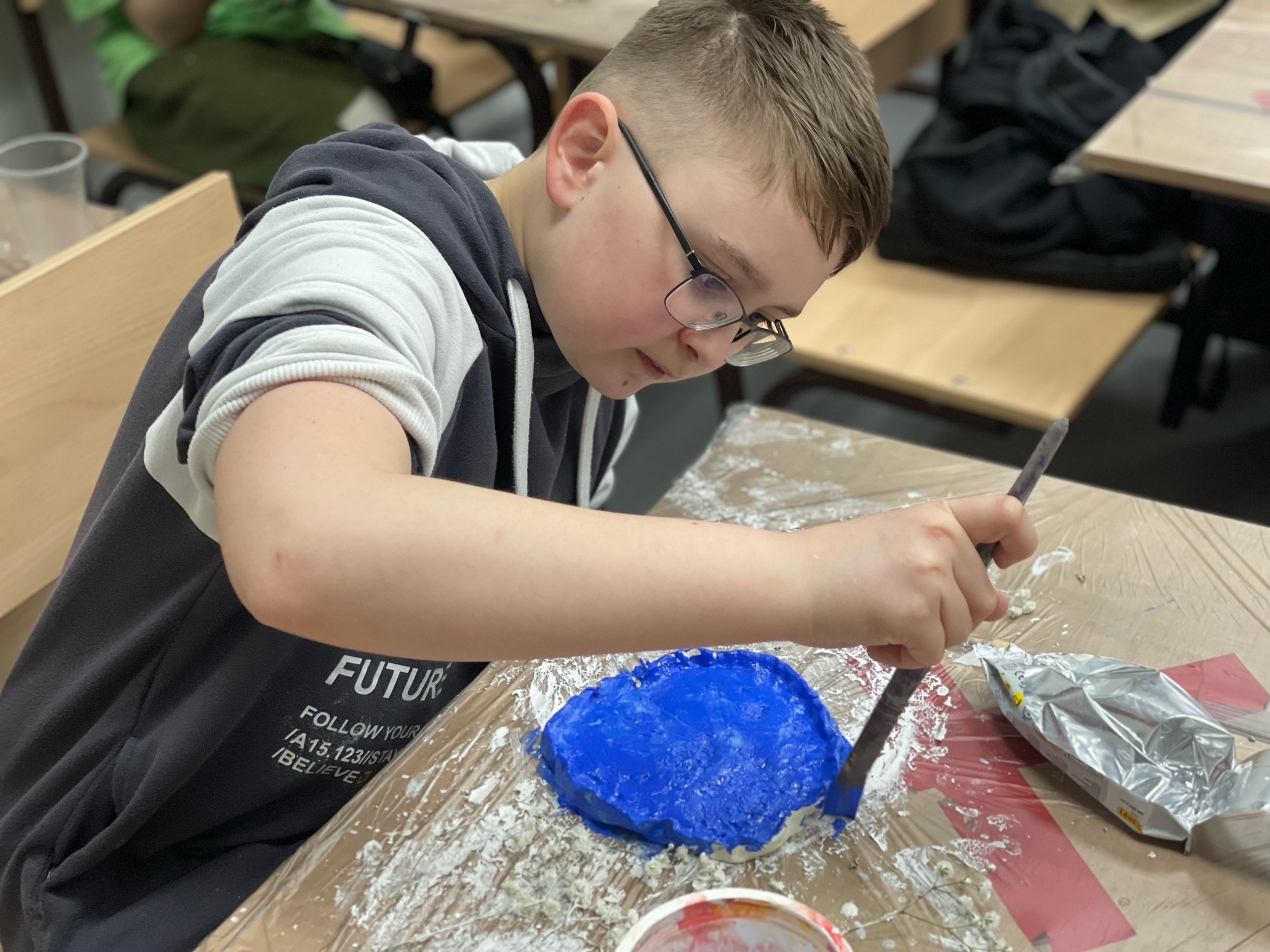 27 марта на ХГФ прошла профориентационная встреча со школьниками города Уфы. АНО центр содействия продуктивной занятости населения и карьерного консультирования «Профитерра» обратились к деканату нашего факультета с просьбой провести экскурсию для ребят с целью знакомства с профессией художника и дизайнера. Заведующая кафедрой ИЗО Фаткуллина Дина Рустямовна встретила группу школьников, провела по факультету, рассказала о учебе и жизни на ХГФ, про перспективы развития наших профессиональных направлений. Так же был проведена профессиональная проба, "Художник-учитель" для учащихся психолого-педагогических классов. А затем студенты 2-го курса направления Изобразительное искусство и технология провели для ребят мастер-класс по декоративно-прикладному искусству, изготовили вместе с ними декоративные керамические тарелочки. Ребятам очень понравилось мероприятие и многих заинтересовала профессия художника. Ждем ребят на дне открытых дверей!