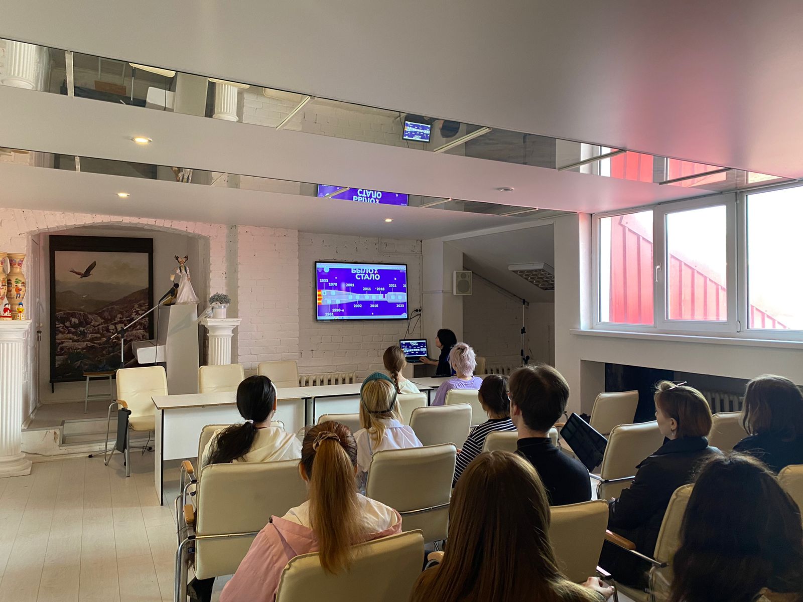 11 апреля на ХГФ в рамках внеучебного мероприятия Разговоры о важном студентка ДИЗКГА-11-23  Соложенцева Елена провела профориентационное занятие Россия- мои горизонты. Темой дня, в преддверии дня космонавтики, стала тема: Россия космическая: узнаю о профессиях и достижениях в космической отрасли. Ребята просмотрели предложенные видеоролики и обсудили тему освоения космического пространства, отросли и профессии, появившиеся в этой сфере. И, в том числе, влияние эры освоения космоса на дизайн в целом.