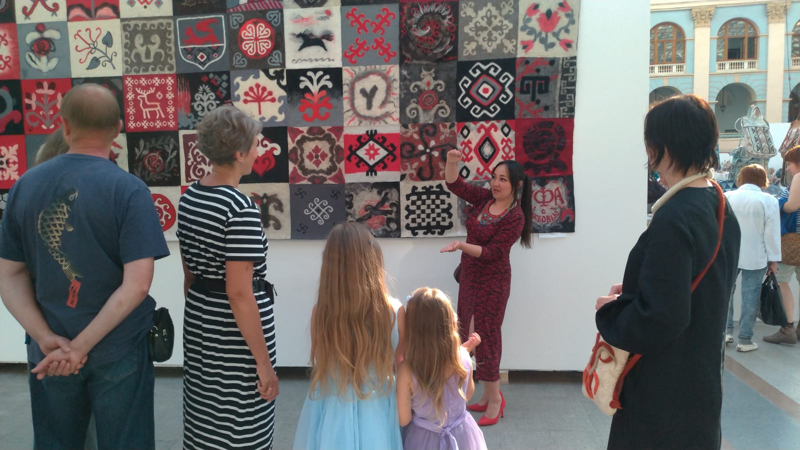 В Москве, в Гостином дворе, с 8-16 июня 2024 г. прошел Международный лоскутный Фестиваль "Душа России". Особенно радостно, что коллективное полотно Корама-кийез, в создании которого приняли участие в том числе студенты и преподаватели  ХГФ вошло в экспозицию выставочного пространства. В свою очередь, столь масштабное полотно, было изготовлено силами мастеров, художников, любителей Республики Башкортостан в рамках фестиваля Войлокфест, прошедшего в 2023 году.Куратор проекта, выпускница БГПУ им. М.Акмуллы, Ляйсан Гильманова рассказывает посетителям Фестиваля Душа России о создании полотна Корама-кийез. Не лишним будет сказать, что в проекте приняли участие 4 преподавателя (ныне работающих) и 22 студента университета
