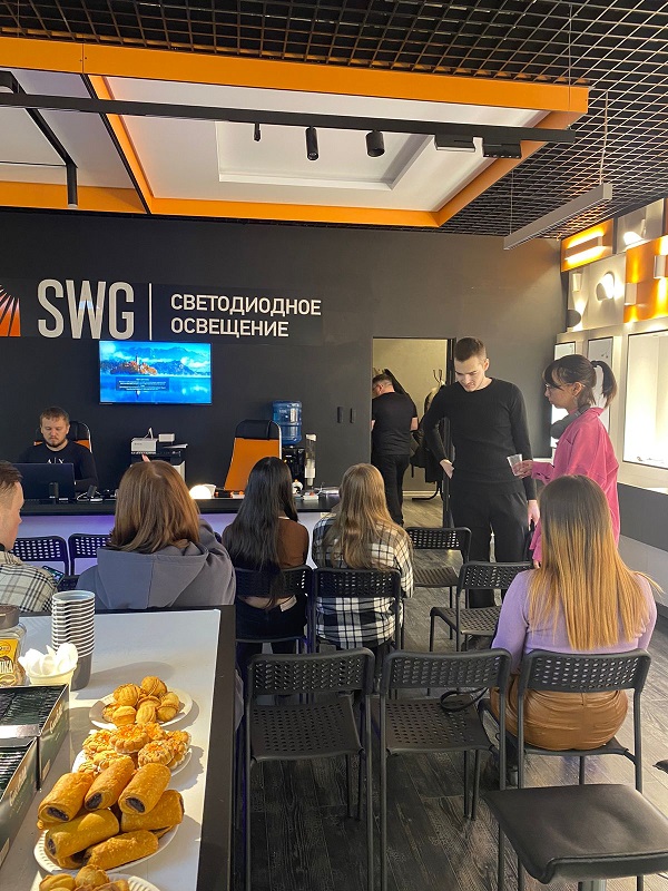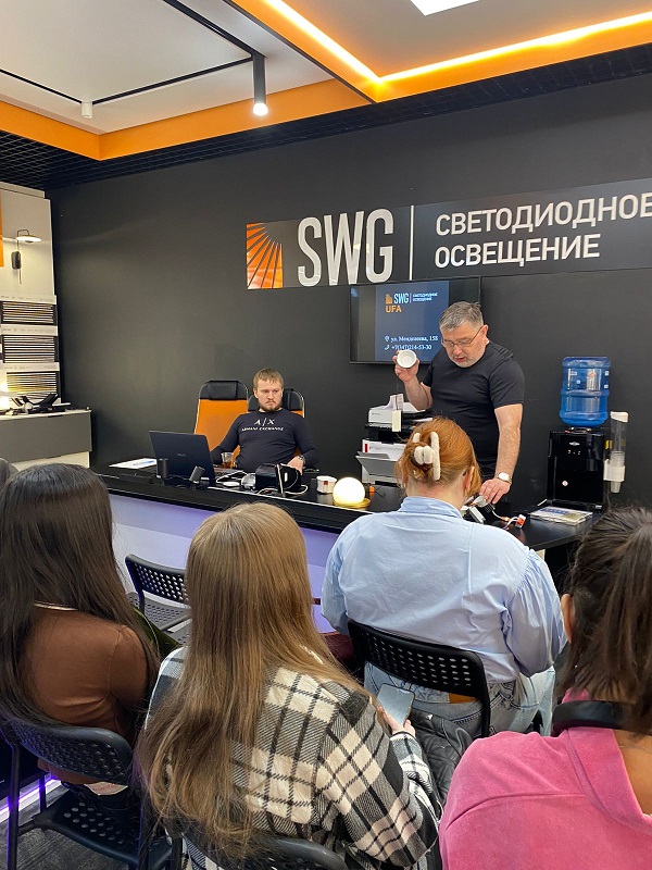 Интересную и познавательную лекцию по актуальным вопросам современного освещения в интерьере провели компания SWG, в лице директора и партнера Алексея Каравдина для студентов 3,4 курсов по направлению «Дизайн» и «ДПИ и Дизайн» БГПУ им. Акмуллы. Компания SWG специализируется на профессиональном дизайнерском осветительном оборудовании, имеет своё производство в России и занимается актуальными и техническими разработками в дизайне света. Алексей Каравдин в своей лекции рассказал как сила, направленность, теплота света влияет на восприятие интерьера и какое действие оказывает на психоэмоциональное состояние человека. Затронули темы программирования, новинок, системы «умный дом», колористики, ознакомились со стендами компании и образцами