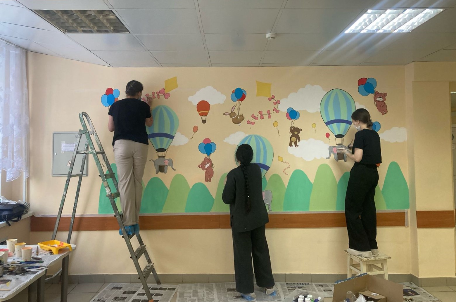 Роспись на стене выполнили студентки графического факультета БГПУ имени Мифтахетдина Акмуллы Эльнара Агаева и Анастасия Вакульская. Игровое пространство мобильно и подходит под любые детские затеи. Волонтеры фонда «Потерь нет» смогут использовать его как удобное место для проведения творческих занятий и мастер-классов с детьми, материалы для которых также закуплены на средства гранта.