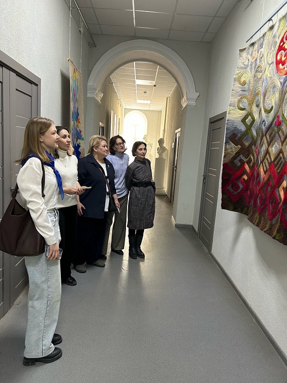 Учителя - наставники посетили выставку студенческих работ, посвящённую блокадному Ленинграду, а также провели обзорную экскурсию по художественно-графическому факультету, где рассмотрели выпускные квалификационные проекты студентов.