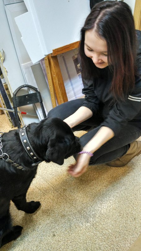 17 марта в макетной мастерской ХГФ состоялась встреча руководителей социальных проектов, направленных на помощь людям с тяжелыми нарушениями зрения, "Трогательный Башкортостан" (https://vk.com/trogatelnibashkortostan) Дорофеевой Е.Н. и "Прикосновение к Уфе" (https://vk.com/prikosnovenie_k_ufe) Азалиевой Е. и Исламгуловой А. с Хасановой Гузель Вилисовной - руководителем клуба владельцев собак-проводников «Актырнак» (https://vk.com/sobakaprovodnik) . Гузель Валисовна с интересом выслушала рассказ о проектах, дала дельные советы по их дальнейшему развитию. А ее верная подруга собака-повадырь Андора с удовольствием пообщалась со студентами.