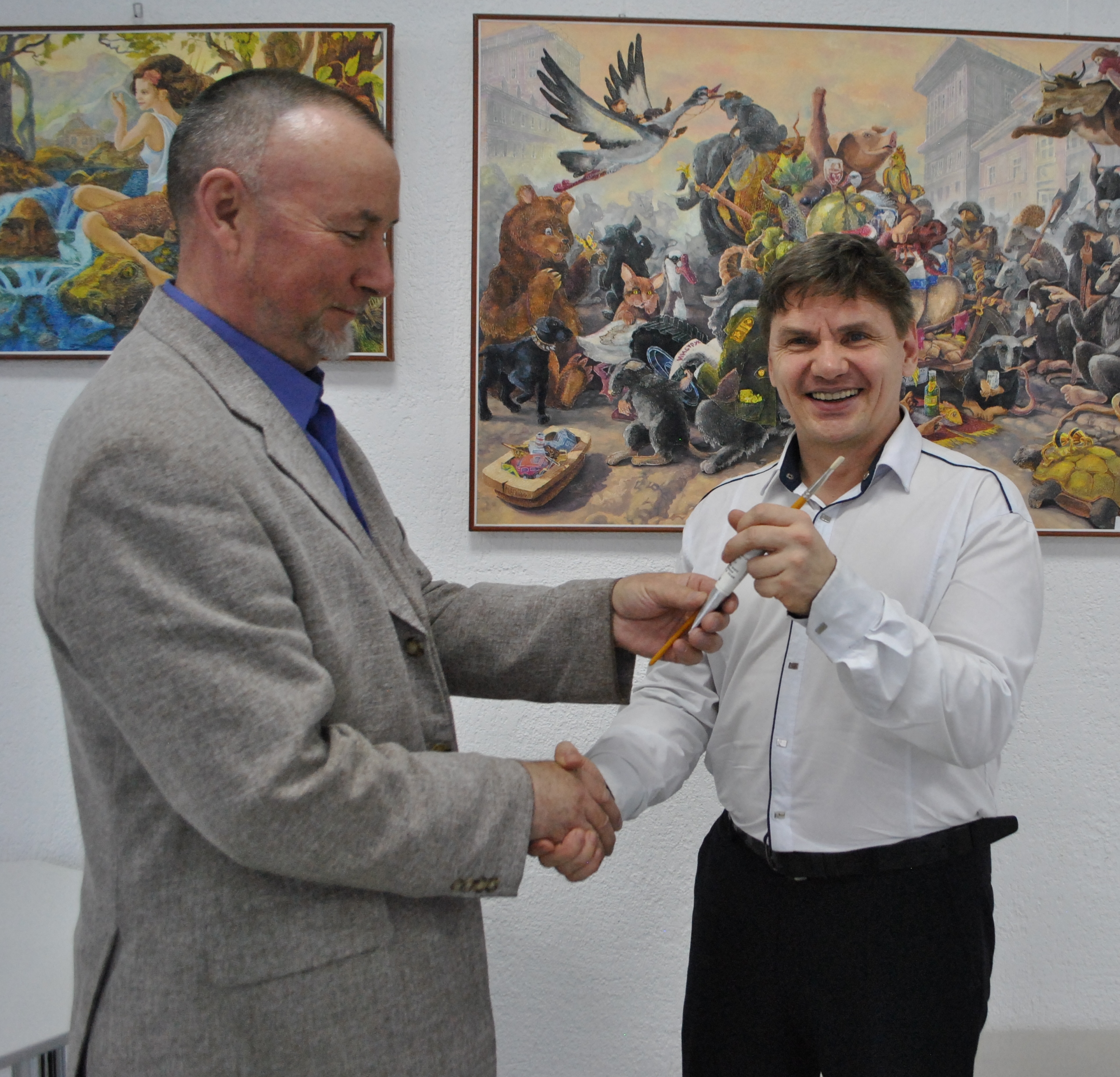 Официальное открытие выставки началось с короткого выступления автора о своем творческом пути и презентации других работ, живописи и графики.  Декан Художественно-графического факультета - Масалимов Т.Х. выразил благодарность Михаилу Александровичу за выставку и творческую встречу со студентами. В рамках выставки запланированы мастер-классы для студентов и сотрудников университета. Запланирована совместная работа с обществом "АртПуть" по проекту "Парк любимый городской" и проведение проектно-выставочных мероприятий.
