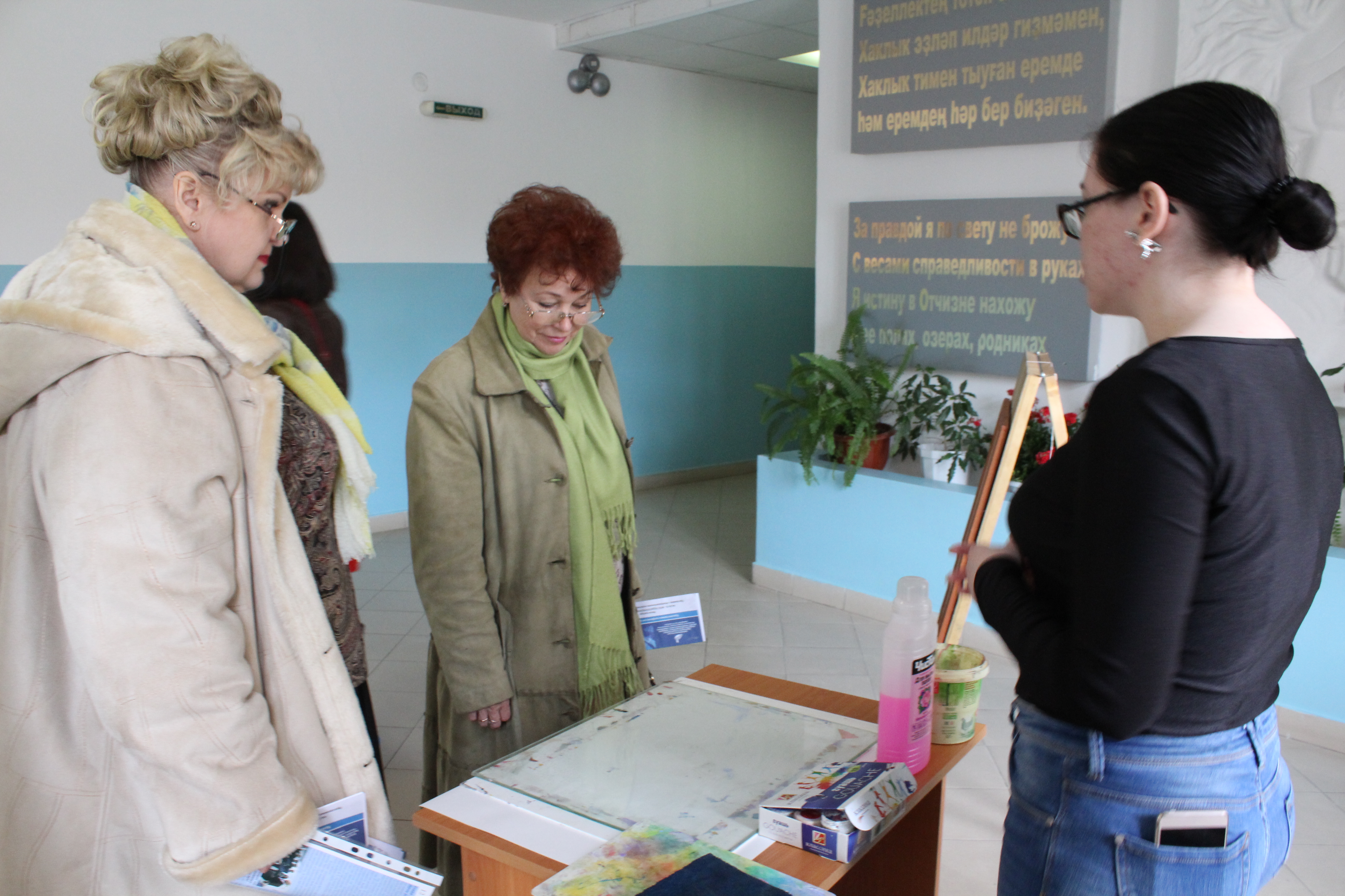 Группе московских гостей, руководителям столичных образовательных учреждений, руководителям системы образования Уфы были представлены войлочные полотна, выполненные в Центе художественного войлока. Работы получили высокую оценку зрителей. Декан Художественно-графического факультета Т.Х. Масалимов рассказал гостям о процессе восстановления традиционных технологий войлоковаляния, об особенностях развития этого уникального вида декоративно-прикладного искусства у нас в республике. Было отмечено, что начинания коллектива факультета получили широкую поддержку среди педагогического сообщества и художников региона.