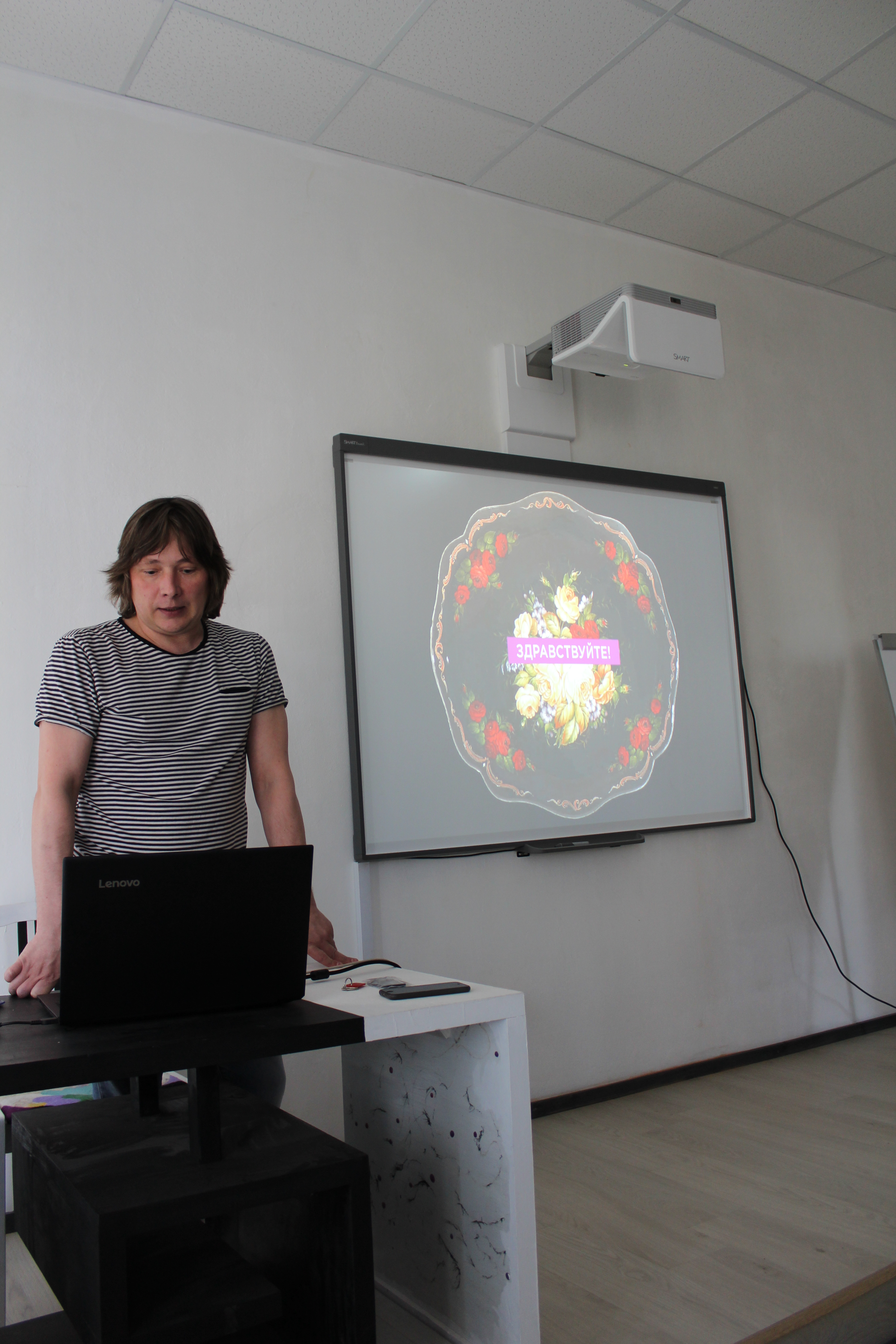 Ильшат Рифгатович Байбурин – один из известнейших выпускников Художественно-графического факультета, дизайнер, входящий в ТОП 5 Российской дизайн-индустрии. Ильшат Рифгатович – прекрасный художник и живописец и арт-директор студии Paradox Box представил презентацию в своеобразной авторской манере с использованием многочисленных сравнений из истории дизайна, рассказал о графическом дизайне, трендах, дизайне упаковок, леттеринге. Он также ознакомил участников мероприятия с некоторыми проектами студии Paradox Box. Рассказал об известных дизайнерах и студиях России и зарубежья.