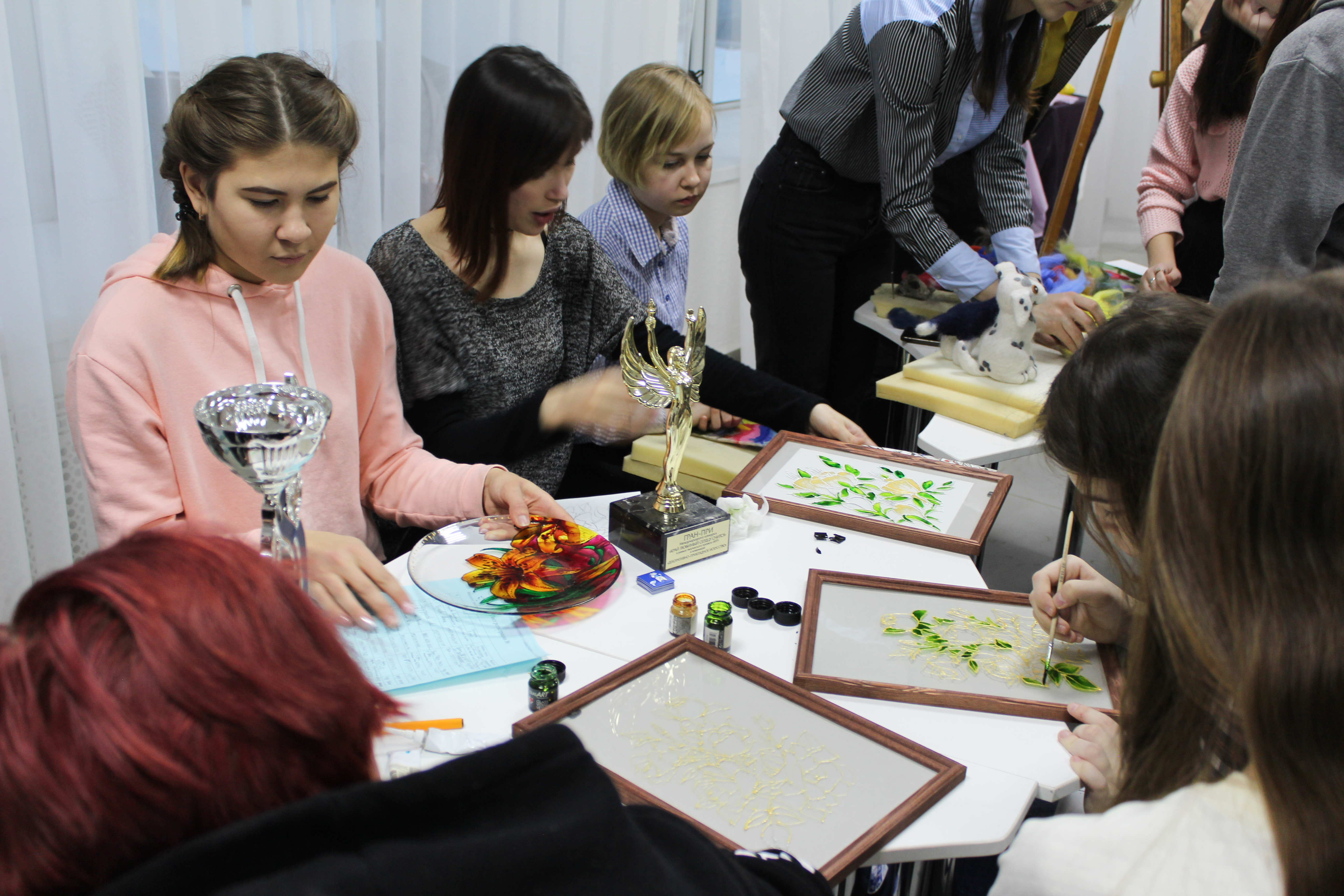 Художественно-графический факультет представил ряд мероприятий и мастер-классов, разработанных для будущих абитуриентов. Наиболее популярным стал мастер-класс по росписи стекла, все участники с удовольствием выбрали эскизы и приступили к росписи. Участники использовали специальный контур по стеклу и витражные краски на лаковой основе. По итогу у всех получилась яркая и необычная работа на стекле. Мастер-класс по войлоку также привлек внимание большого количества людей. На этом мастер-классе можно было научится основам войлоковаляния и попробовать создать небольшую работу в технике сухого валяния. Еще один мастер-класс - «Академический рисунок» вызвал ажиотаж среди учеников РХГИ им. К.А. Давлеткильдеева. Целью мастер-класса было наглядно показать абитуриентам выполнение одного из вступительных экзаменов на факультет. Была выставлена постановка для экзамена по Рисунку и студентка 1 курса, направления Дизайн - Сидорова Наталья поэтапно выполнила задание и показала отличное владение основами академического рисунка. В Белом выставочном зале проходила выставка Ивана Федорова «Художник, муза и поэт». Выставка посвящена писателям и поэтам, вниманию абитуриентов представлены великолепные портреты А.С. Пушкина, С.А. Есенина, А.А. Блока, В.В. Маяковского, И.А. Бродского и других. На дне открытых дверей присутствовали: декан, заместители декана по учебной и воспитательной работе, заведующие кафедрами и профессорско-преподавательский состав, которые активно отвечали на вопросы будущих абитуриентов. Большую помощь в проведении дня открытых дверей оказали студенты старших курсов и активисты Художественно-графического факультета.