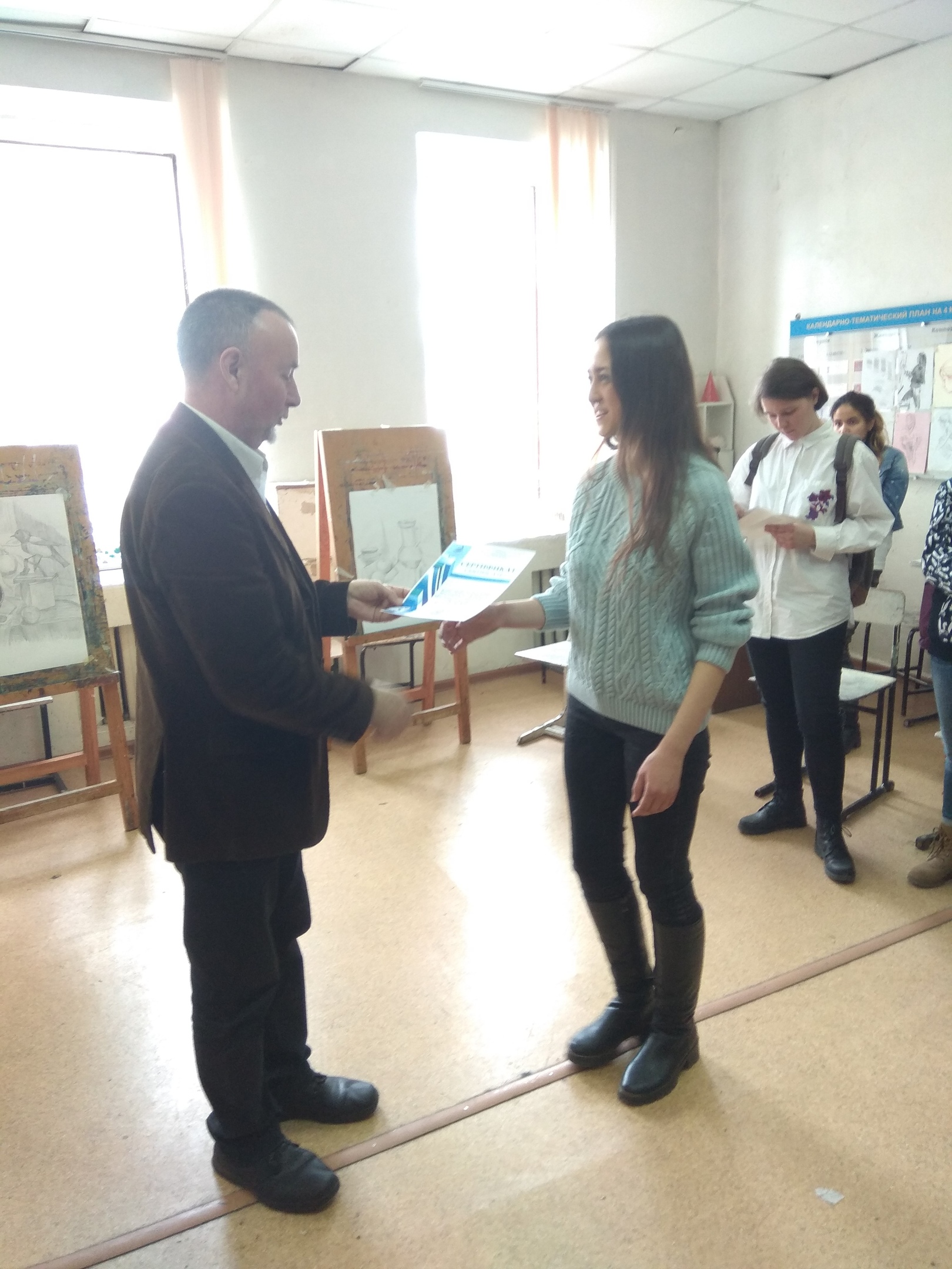 30 марта 2019 г. прошел День открытых дверей на Художественно-графическом факультете. Абитуриенты посетили Многофункциональный центр на факультете, где выступили: декан - Масалимов Талгат Хасанович, зав. кафедрой ИЗО - Пурик Эльза Эдуардовна и зав. кафедрой дизайна - Плотникова Елена Викторовна. Абитуриенты получили подробную информацию о направлениях и профилях подготовки Художественно-графического факультета. Родителями и абитуриентами было задано много вопросов, касающихся вступительных экзаменов и требованиях при поступлении, о предоставлении общежития, а также о наличии подготовительных курсов. На все вопросы абитуриенты и родители получили доступное разъяснение. После абитуриенты приступили к пробному экзамену по рисунку, это творческий экзамен необходимый при поступлении на факультет. По итогам пробного экзамена работы были оценены, выбрана лучшая работа и обсуждены ошибки допущенные при выполнении задания. Вручены призы и сертификаты за лучшие работы: сертификат на 5 баллов при поступлении получила - Уразбахтина Диана, сертификат на 25% скидку в институте повышения квалификации - Бикташева Диана, сертификат на посещение бассейна - Халиуллина Милана, термокружку -Гиздуллина Диана, кружку - Юмагулова Эвелина.