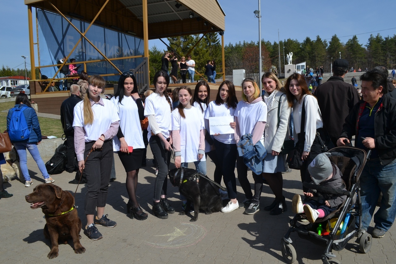 Необычную форму привлечения внимания к закону о доступности среды для слепых с собаками-проводниками нашли студенты-волонтеры проекта "Краеведческая мастерская "ВМесте"". Это - модное дефиле собак-проводников, приуроченное к Международному дню собак-проводников. 27 апреля гости праздника «Наши милые собаки-проводники» на площади перед Лайфстайл-центром "Башкирия" получили массу позитивных впечатлений. В проекте приняли участие волонтеры ХГФ и отделения "ИЗО" педагогического колледжа.