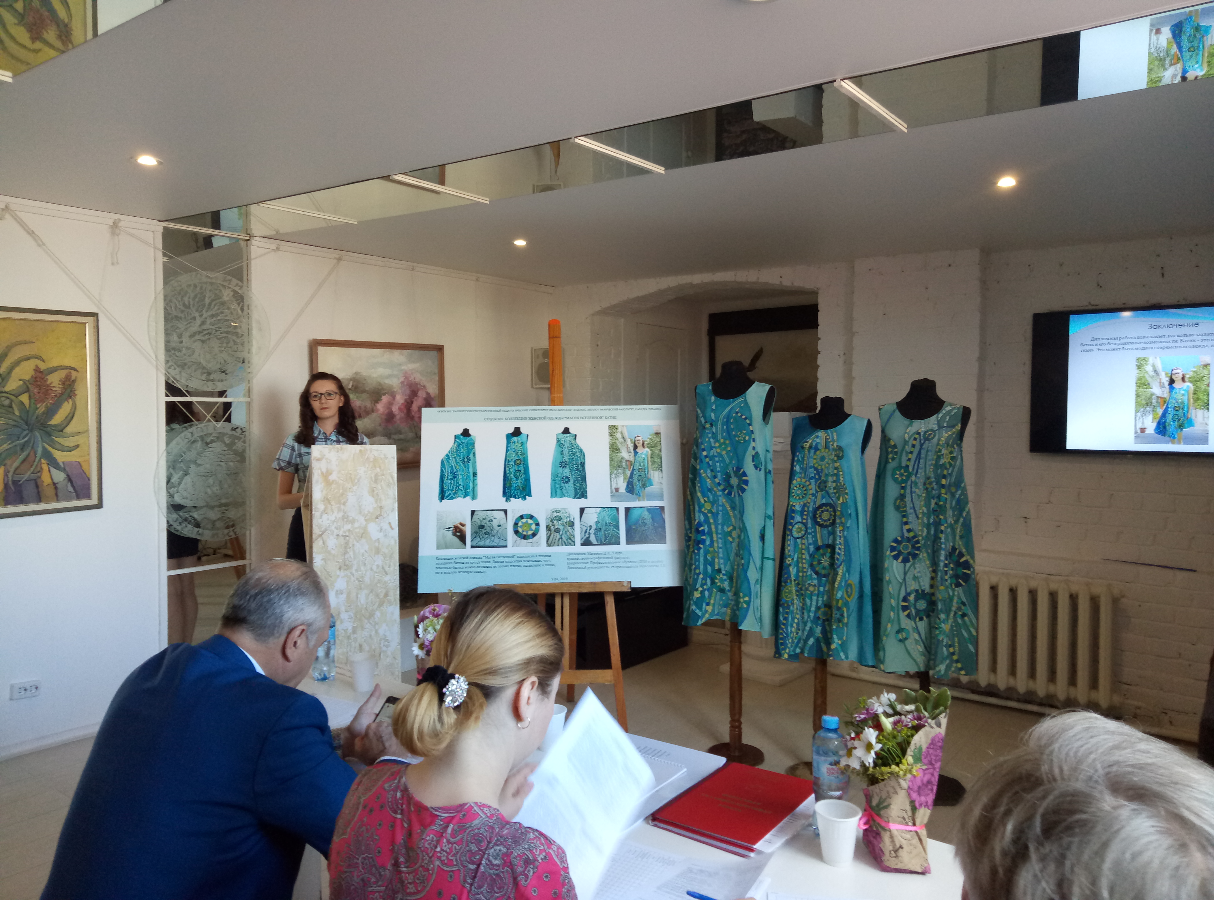 На художественно-графическом факультете началась самая важная и ответственная пора – защиты выпускных квалификационных работ. 13 июня в МФЦ факультета прошли защиты ВКР студентов заочного отделения направления 44.03.04 Профессиональное обучение профиль дизайн. Темы были разнообразными: Елесеева А.А. «Разработка путеводителя для детей по Уфе», Юлдашев А.Н. «Разработка женского костюма в технике мокрого валяния», Байбурин Т.Р. «Изготовление декоративной ширмы «ДЖАЗ»» в комбинированной технике., Абкадыров А.Р. «Технология создания серии работ в технике витражной росписи «Архитектурные истории»», Матвеера Д.Л. «Создание коллекции женской одежды «Магия вселенной»» батик, Вахов Р.Р. «Технология создания стола трансформера для интерьера в стиле «Лофт»».