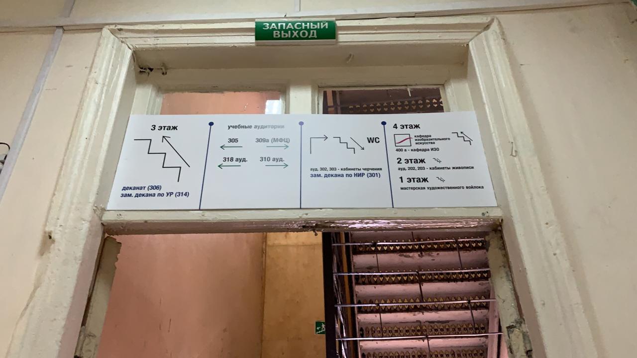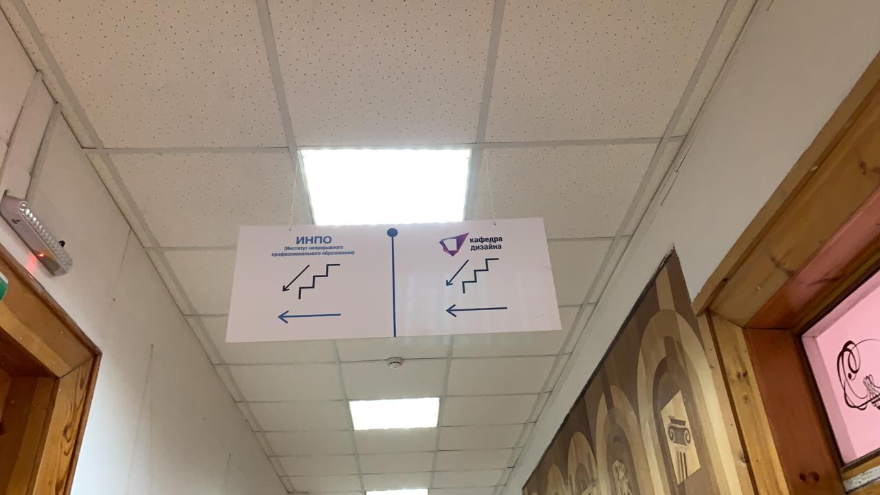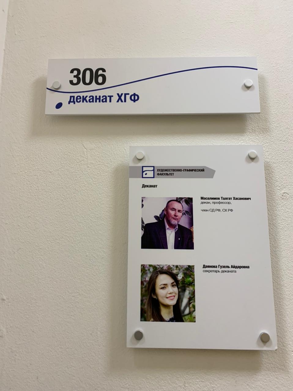 Была разработана навигация по корпусу, фирменный стиль для кафедр, деканата и учебный аудиторий. За каждой кафедрой закреплен фирменный цвет и логотип, использование таких фирменных компонентов ускорит восприятие и поиск кабинета.