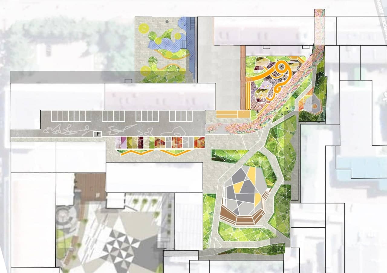 Проект победителей был разработан под лозунгом "Арт-квадрат - место вечной молодости", в нём ребята стремились раскрыть тему многогранности молодости и разработали проект детской площадки, дополнительного входа со стороны ул. Ленина, зоны тихого отдыха, а также предложили креативные решения существующих проблем.