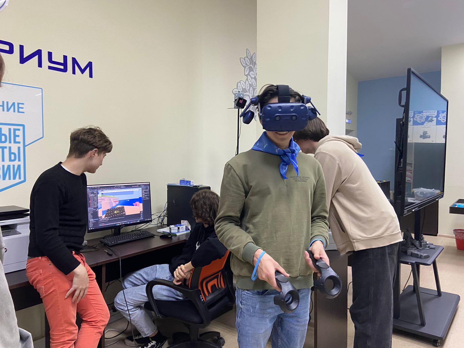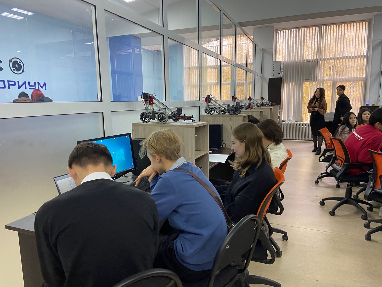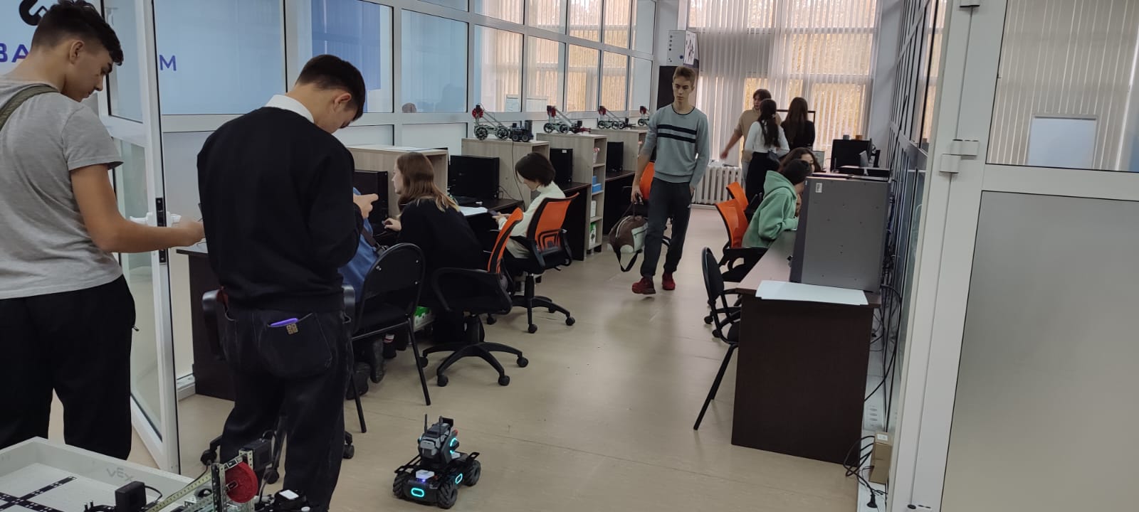 Далее для студентов колледжей директором ИФМЦН Юсуповым Азатом Равильевичем проведена экскурсия по Кванториуму им. Садовничева. Ребят очень заинтересовала имеющаяся возможность в БГПУ заниматься 3D-моделированием, робототехникой и VR-технологиями. При этом команды колледжей участвовали как в секции по разработке VR-сценариев, так и в секции по решениям задач банковского сектора.