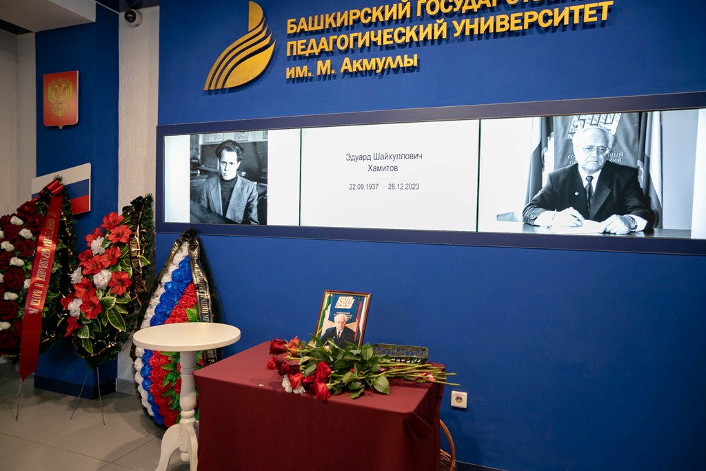 29 декабря Башкирский государственный педагогический университет имени М. Акмуллы простился со своим ректором, проработавшим в вузе более 50 лет, – Эдуардом Шайхулловичем Хамитовым. Церемония прощания состоялась в Белом зале 2 корпуса.