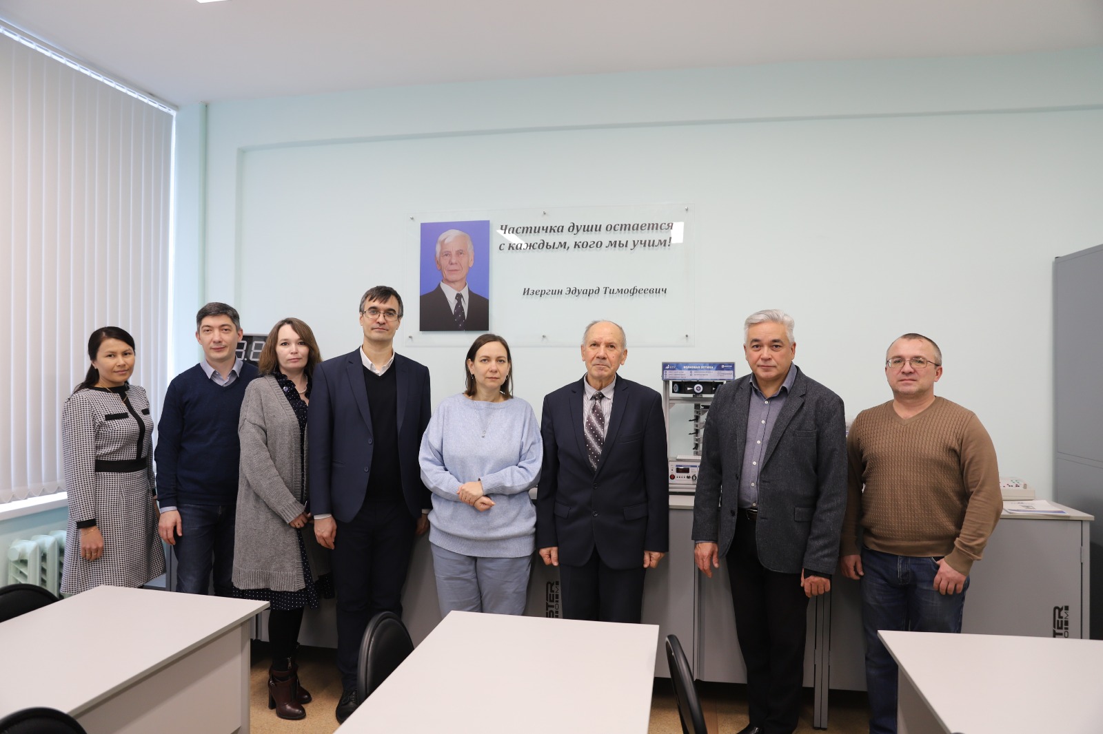 В конце декабря в Институте физики, математики, цифровых и нанотехнологий состоялось открытие еще одного именного кабинета. Имя ветерана кафедры общей физики Эдуарда Тимофеевича Изергина получила комплексная лаборатория по физике. Здесь размещена памятная табличка с фотографией Эдуарда Тимофеевича и его словами, запомнившимися всем коллегам и ученикам: «Частичка души остается с каждым, кого мы учим».