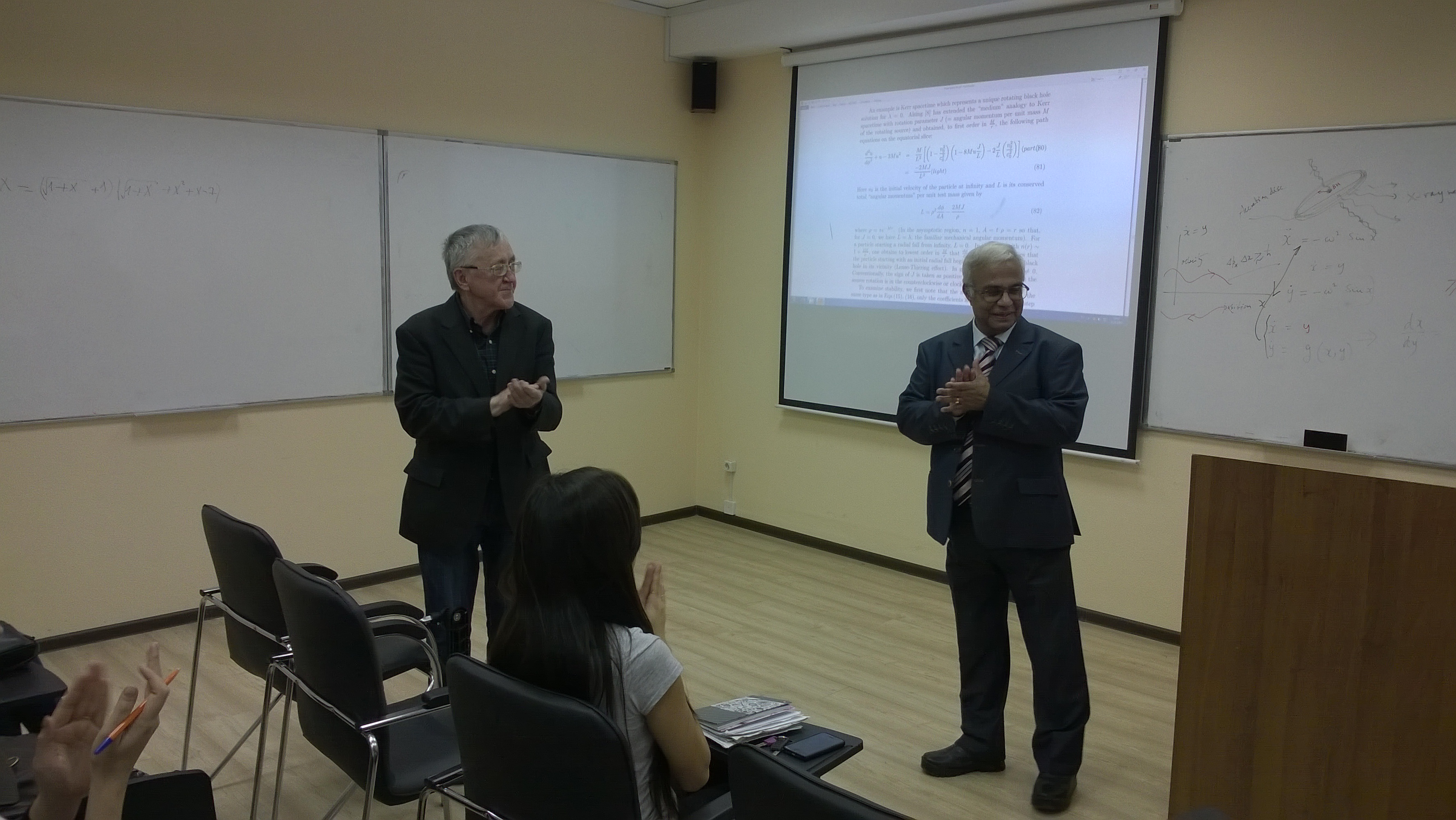 Кафедра математики и статистики и международный научно-образовательный центр астрофизики им. Я. Б. Зельдович 21 ноября обсудили проблемы дальнейшего сотрудничества. На семинаре кафедры математики и статистики под руководством заведующего научно-исследовательской лабораторией «Операторные методы в механике» д.ф.-м.н., профессора Яудата Талгатовича Султанаева выступил с докладом PhD, профессор Камал Канти Нанди. Он рассказал о математических аспектах теории гравитации. Были намечены пути совместных научных исследований.