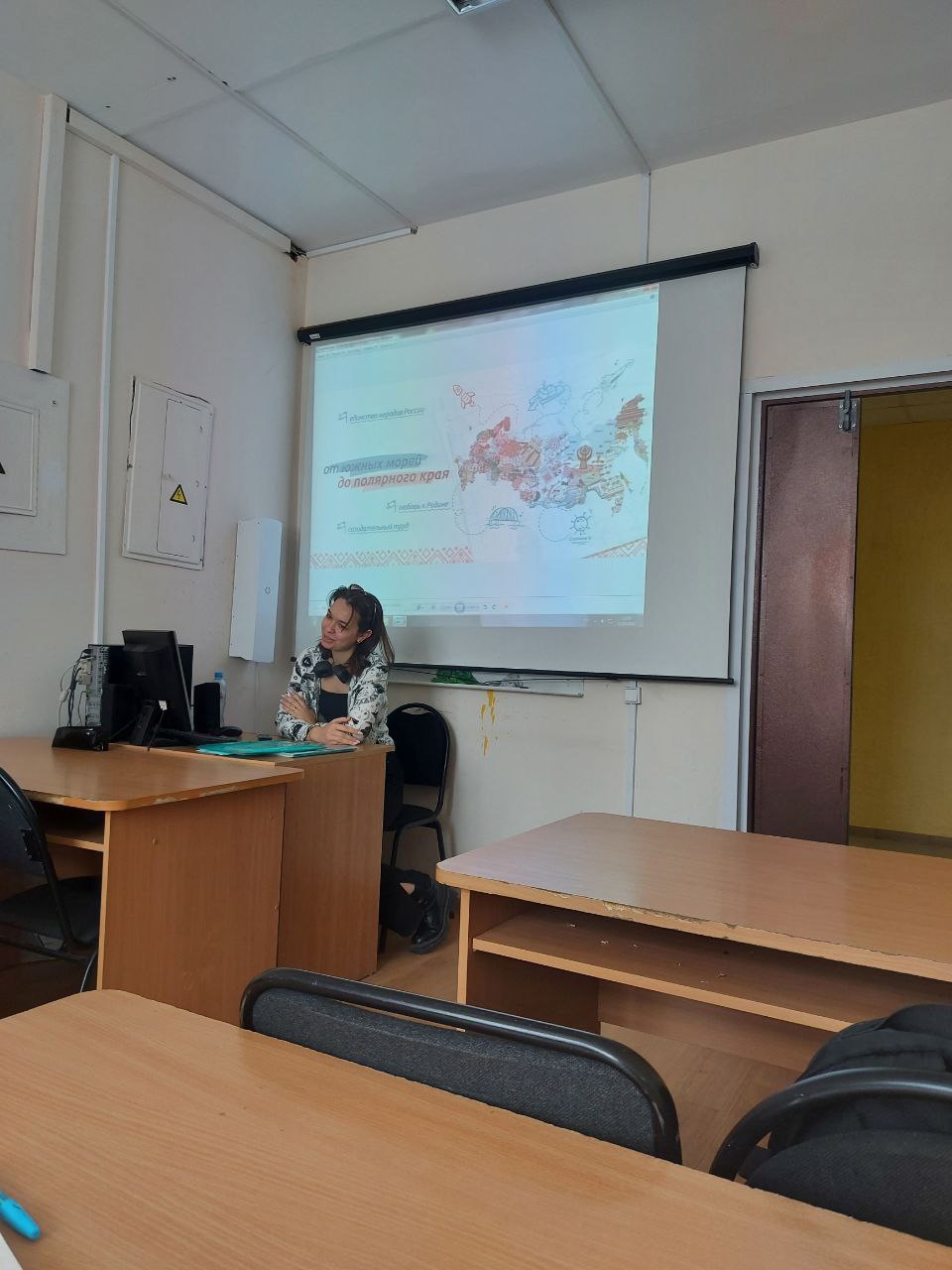 4 марта была проведена рубрика "Разговоры о важном". Ведущей данного мероприятия стала студентка ПОФ_ИНФ-11-23 Гарейшена Светлана. Беседа была проведена со студентами групп ЭИН_ПЭИС_11-23, ЭИН_НМ-11-23, ИСИТ-11-23, ПМФ_МФ-11-23 и ПМФ_КТАД-11-23. Беседа была посвящена поиску своего места в обществе. А также ведущая поговорила со студентами о развитие личностных качеств через познавательные телесериалы. Тезисом мероприятия стало высказывание Президента В.В.Путина "Вообще, найти себя в жизни это самое главное. Это первый шаг к успеху. Если есть увлечение будет обязательно и победа".