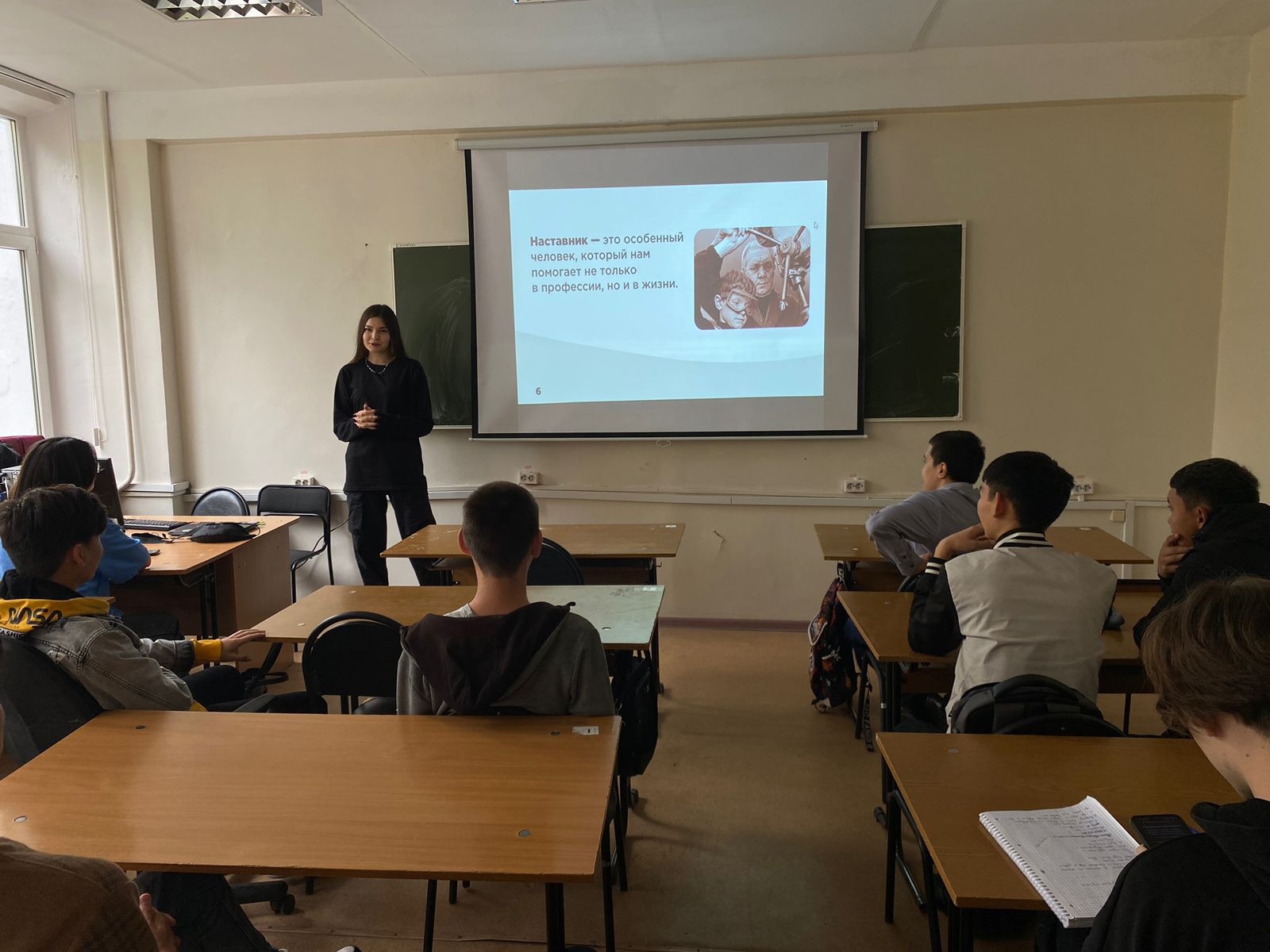 2 октября состоялась рубрика "Разговоры о важном".Ведущей,объяснявшей новую тему, стала Закирова Айсылу , студентка ИВТКТ-31-21 . Она проводила урок со студентами группы ИСИТ-11-23. Они разговаривали о приближающемся празднике - Дне учителя. Ребятам показали роль наставника в профессиональном развитии. Студентам напомнили, как важна и ценна роль педагогов в нашей жизни,ведь "Учитель - профессия дальнего действия,главная на земле"!
